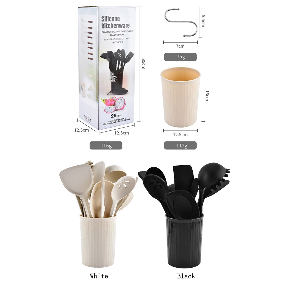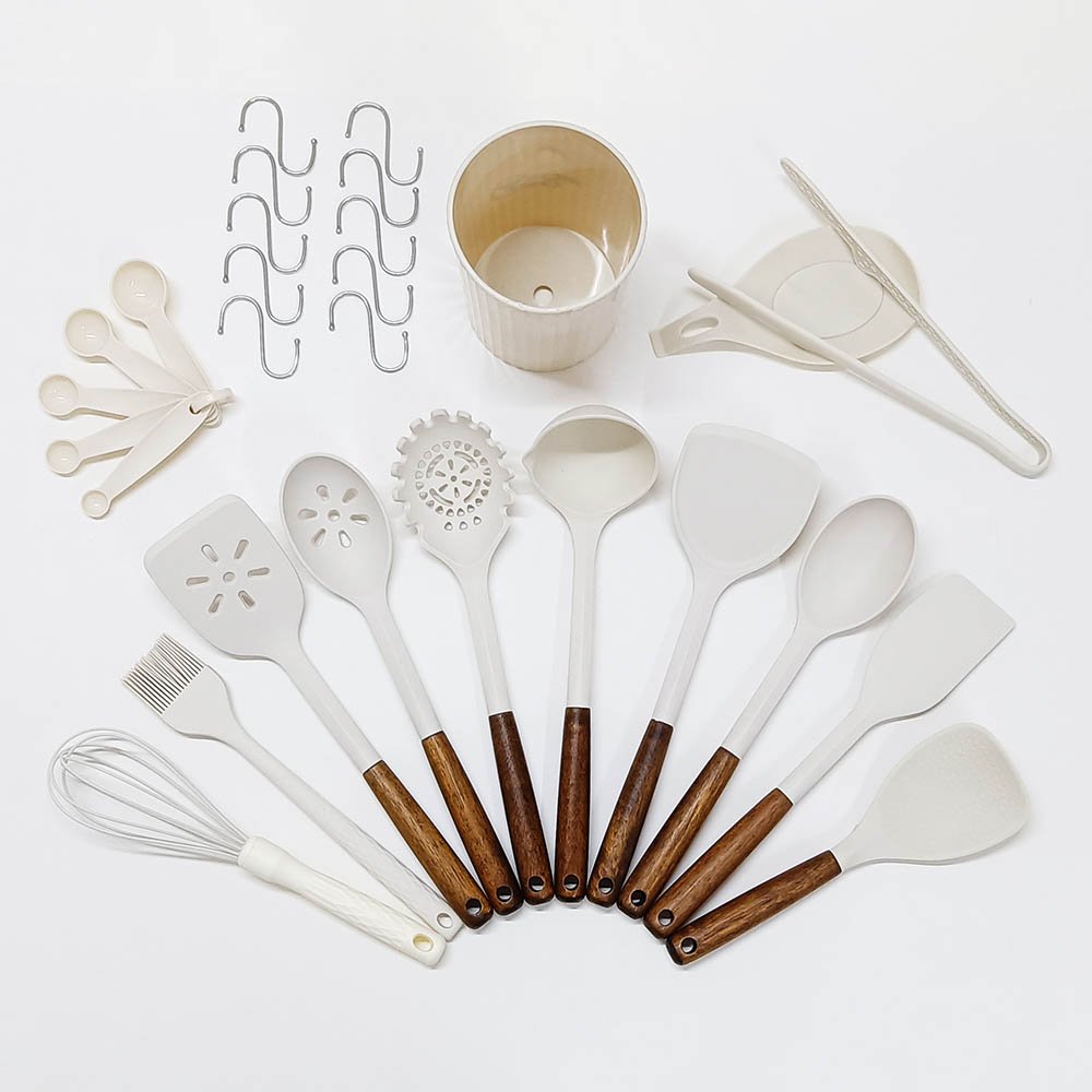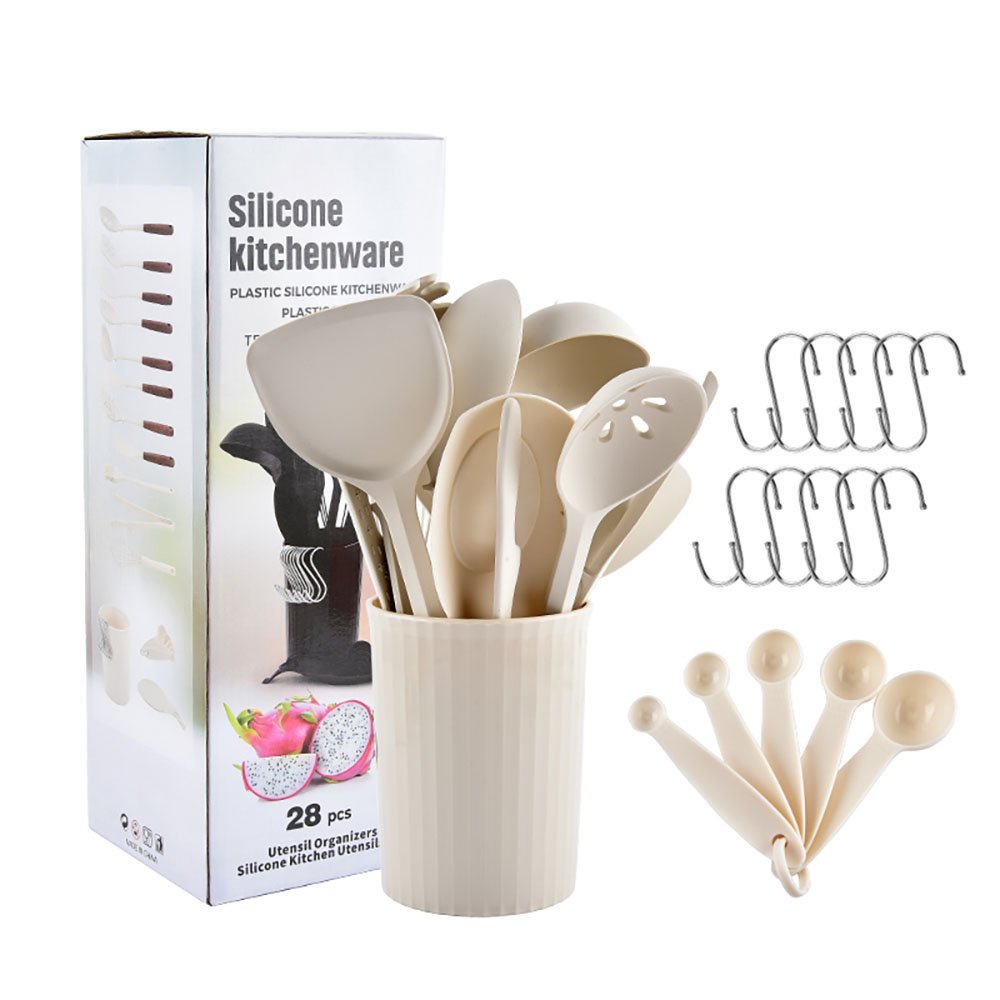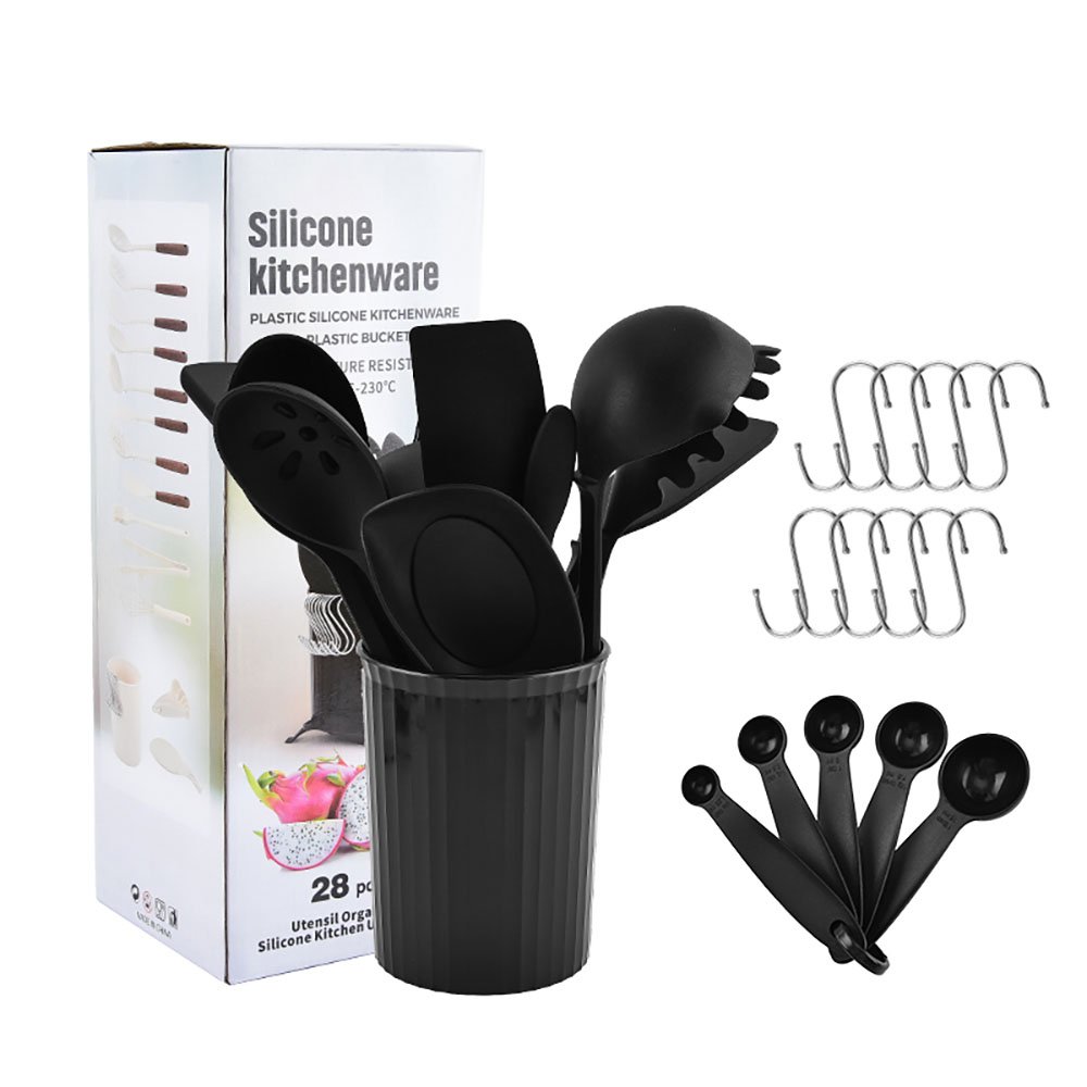 Set of 28 Pieces Kitchen Tools Silicone Cooking Utensils Set with Spoon Rest Measuring Spoons Turner Whisk and Holder. All-in-One Silicone Cooking Utensils Set