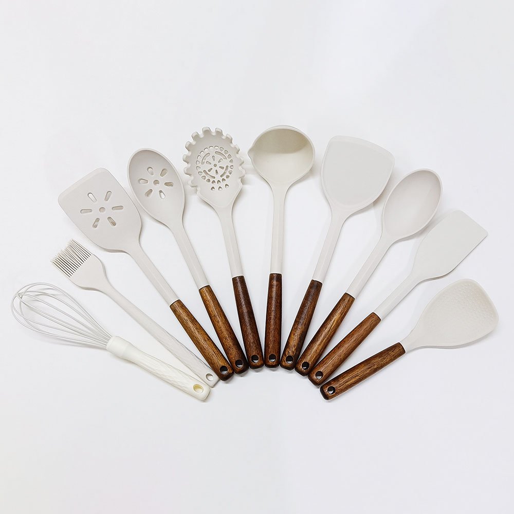 Each utensil in this set is crafted with food-grade silicone and features sturdy wooden handles to ensure maximum durability and heat resistance. The silicone material prevents scratching or damaging your cookware, making it ideal for non-stick pans and pots. Available in elegant white and black colors, these utensils add a modern, appealing touch to your kitchen’s aesthetic. The wooden handle offers a comfortable, non-slip grip for enhanced control while cooking.