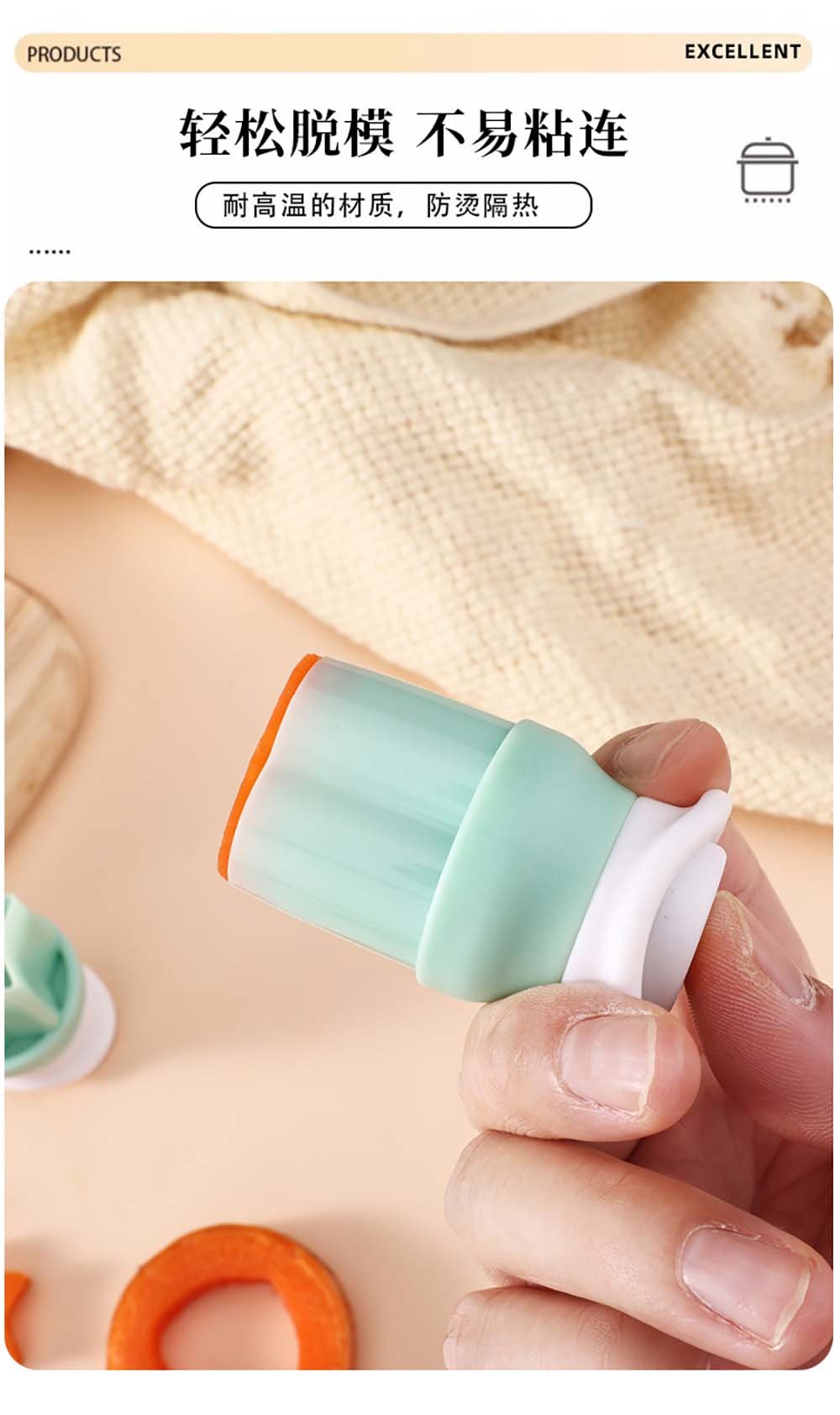 Easy Press & Pop Design: The press-type mechanism makes cutting effortless. Simply place the cutter on your food item, press down firmly with the comfortable handle, and lift—the shaped piece pops out cleanly every time. The smooth, beveled edges ensure easy release without sticking.