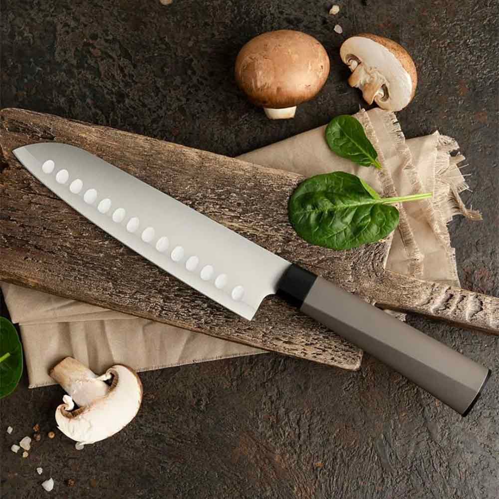 - 1x 8-inch Santoku Knife: A versatile all-rounder for chopping and dicing fish, poultry, meat, and finely slicing or shredding vegetables, fruits, and herbs.