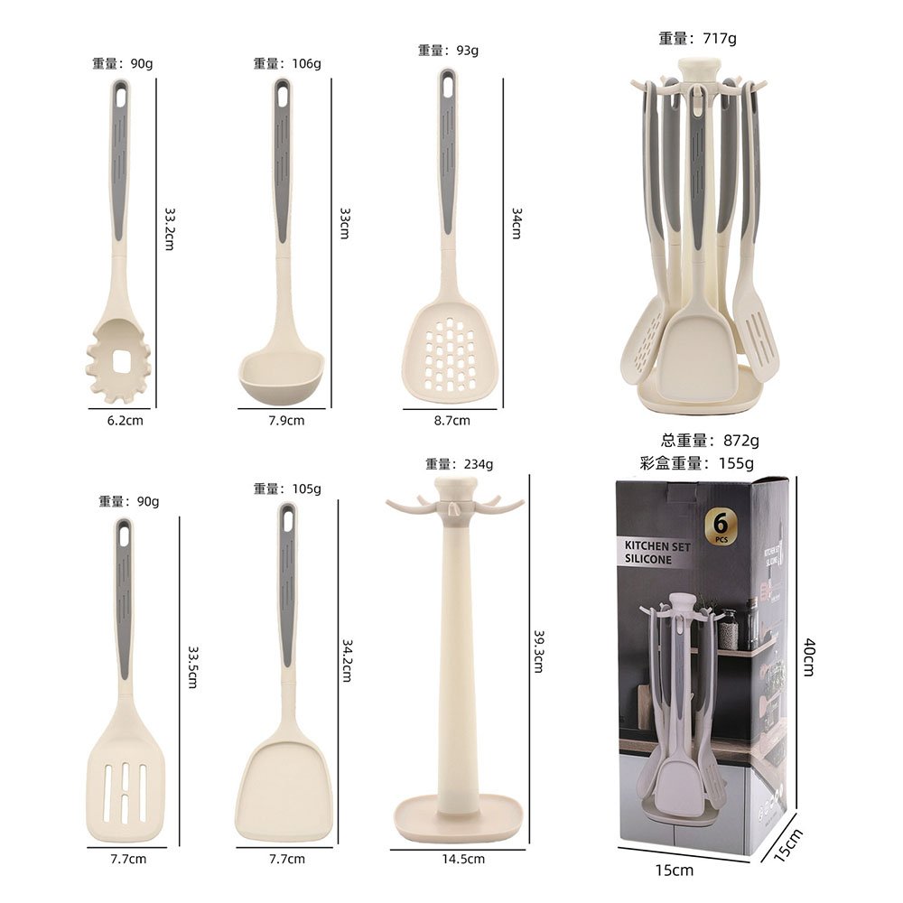 6-Piece Silicone Kitchen Utensil Set with Rotating Storage Stand – Introducing the upgraded 6-piece silicone kitchen utensil set, designed to be your all-in-one solution for safe, efficient, and stylish cooking. This collection combines ‌food-grade silicone tools‌ with a ‌space-saving rotating storage stand‌, making it perfect for modern kitchens that value both functionality and aesthetics.