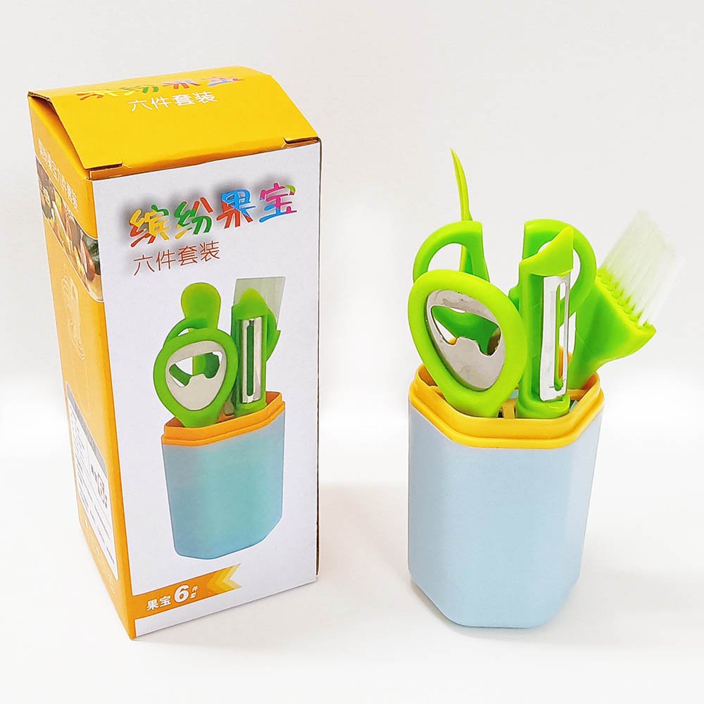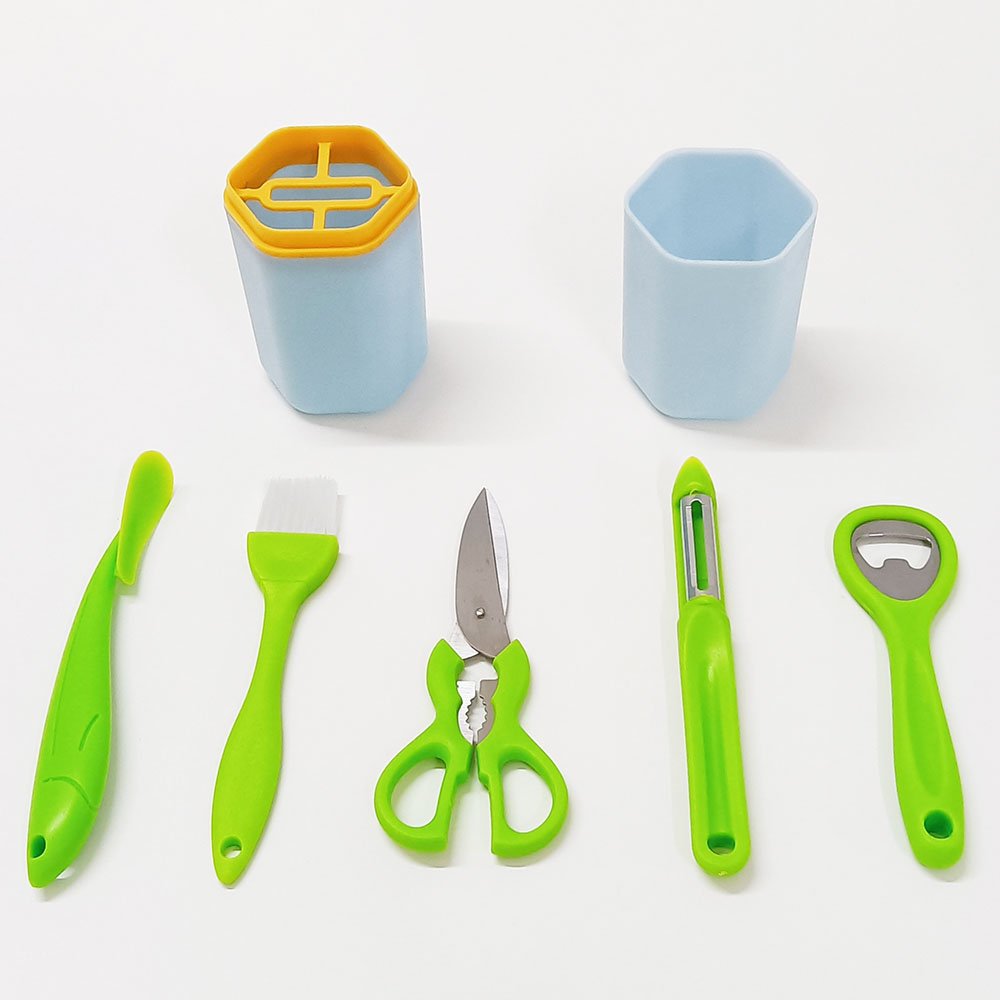 6pcs Gadgets Set Includes Opener Scissors Peeler Brush with Holder