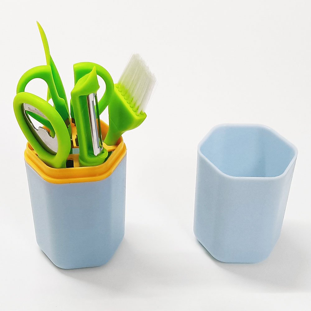 • Includes: 1x Bottle Opener, 1x Scissors, 1x Vegetable Peeler, 1x Orange Peeler, 1x Brush, 1x Storage Holder.