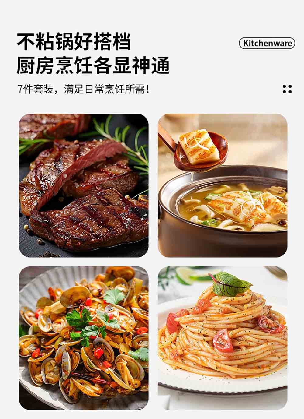 - Spaghetti Spoon (32.5cm): Features raised edges and a center hole for easily serving and draining pasta, noodles, and other long foods.