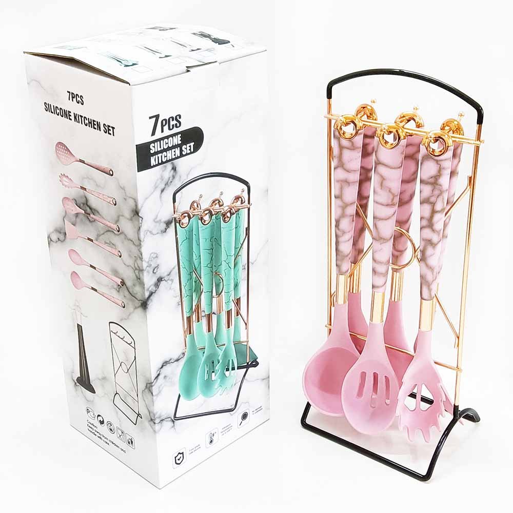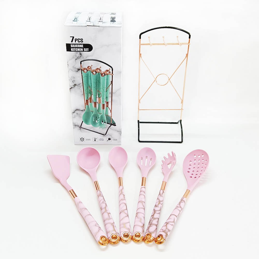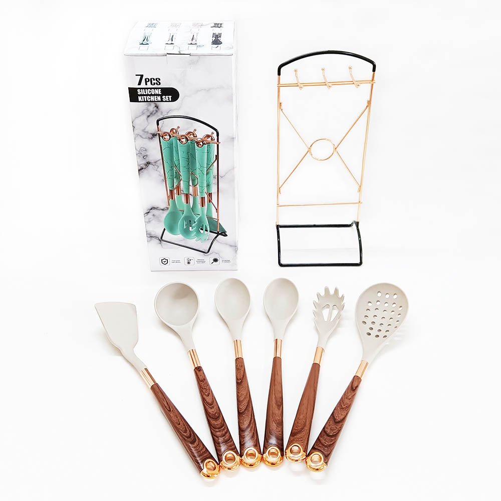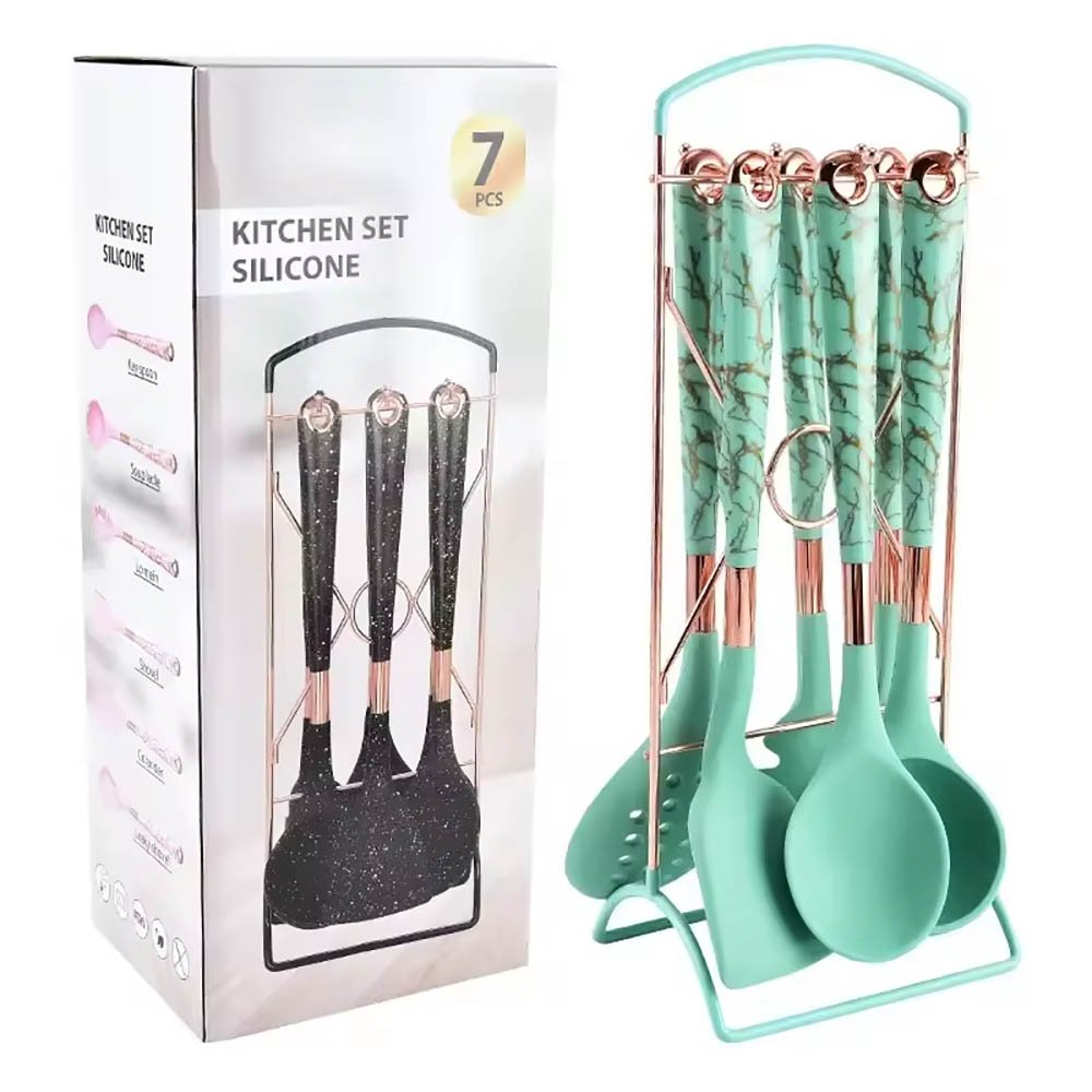 Elevate Your Cooking Experience with Our Premium 7-Piece Silicone Kitchen Utensil Set with Hanging Rack
