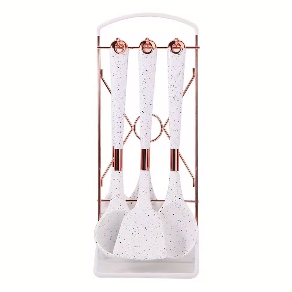Complete Kitchen Companion with 7-Piece Silicone Kitchen Utensil Set with Hanging Rack: This all-in-one 7-piece set provides everything you need for seamless cooking, baking, and serving. Designed for the modern kitchen, it combines functionality, safety, and elegant storage.