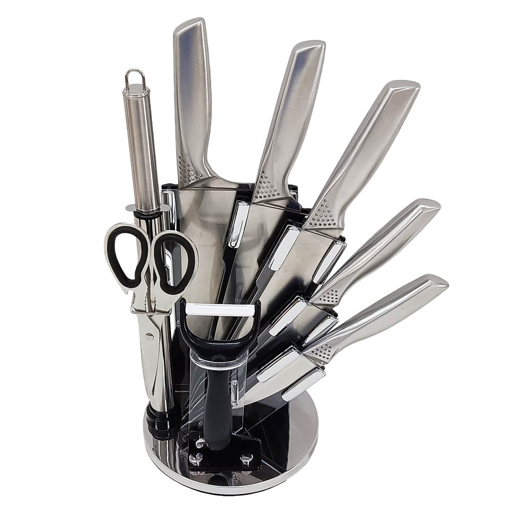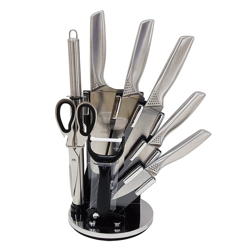 9-Piece Stainless Steel Kitchen Knife Set with 360 Rotating Block