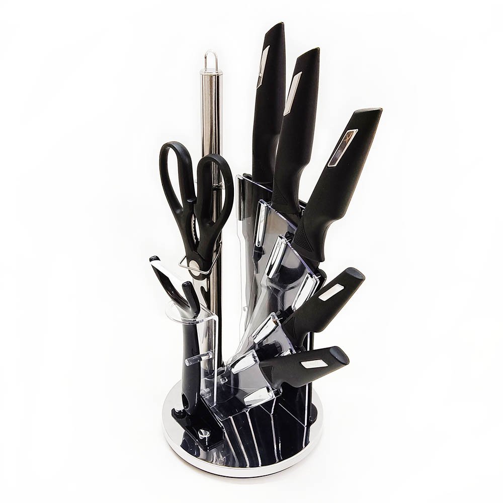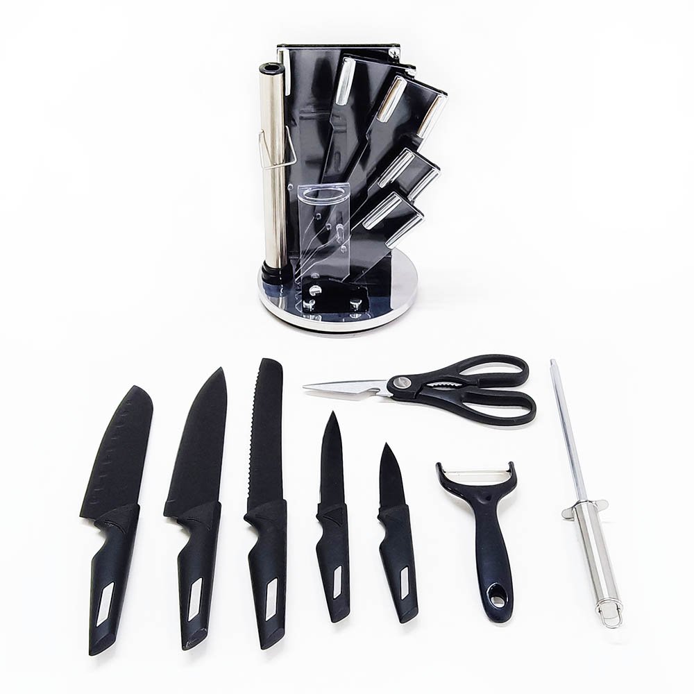 9-Piece Stainless Steel Knife Set with Rotating Acrylic Stand