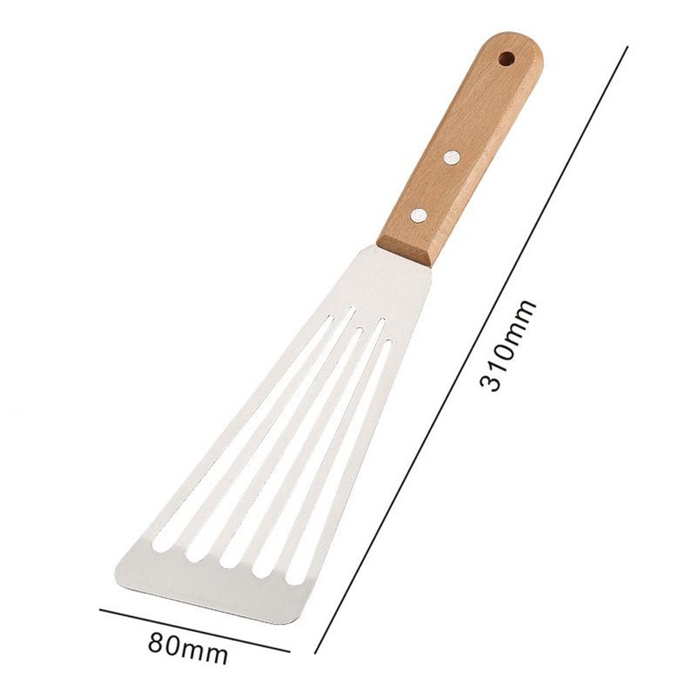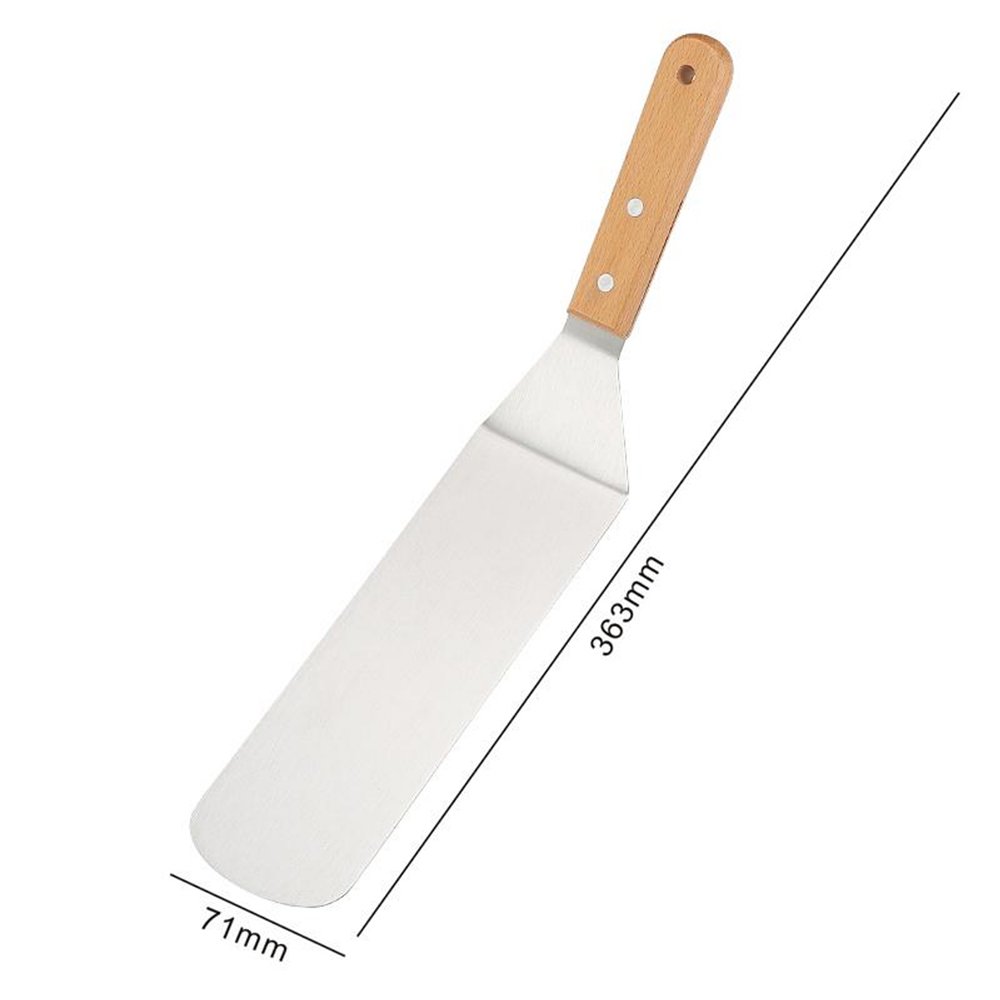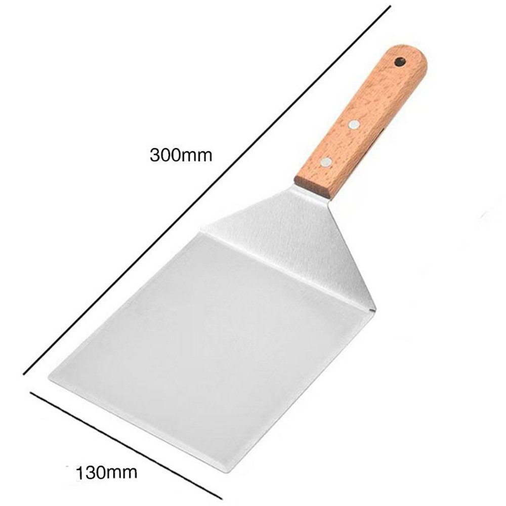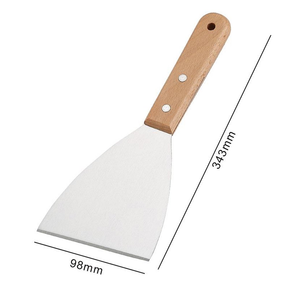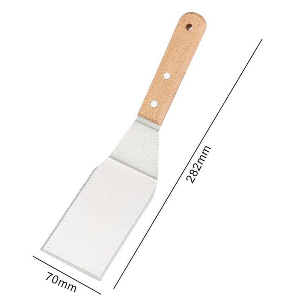 Introducing the Stainless Steel Barbecue Flat Griddle Spatula Set with Wooden Handle, a must-have tool kit for grilling enthusiasts. Crafted from high-quality 2CR13 stainless steel, this heavy-duty griddle accessories kit guarantees durability, corrosion resistance, and long-lasting performance. Paired with a Beech Wood handle, this set delivers a secure grip while adding a natural aesthetic touch to your culinary tools. Whether you’re flipping burgers, turning pancakes, or scraping your teppanyaki or cast iron flat top grill clean, these tools are meticulously designed to withstand frequent use and intense heat.