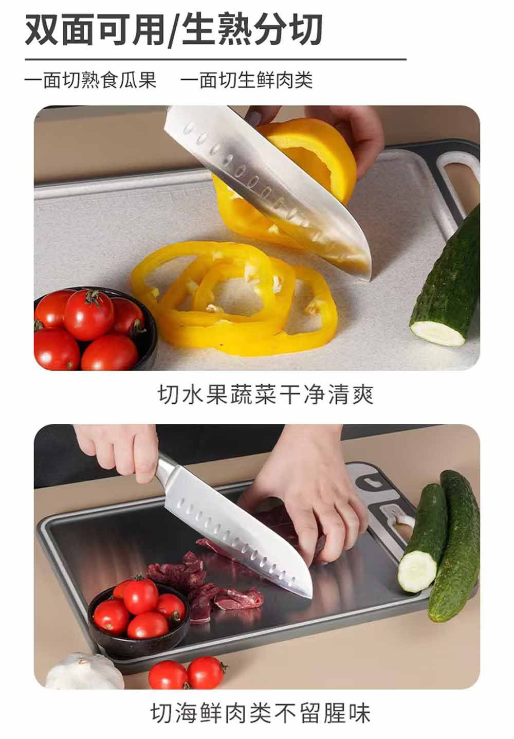 Dual-Surface System for Optimal Hygiene: Master safe food handling with ease. Use the easy-clean, naturally antibacterial 304 Stainless Steel side for raw meats, poultry, and seafood—it resists odors and stains. The gentle, non-slip Wheat Straw composite side is perfect for fruits, vegetables, bread, and ready-to-eat foods. This separation is key to preventing cross-contamination.
