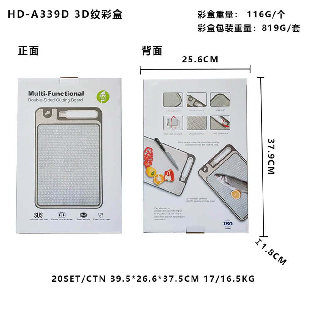 - Material: Dual-Surface: 304 Stainless Steel (3D Diamond Wave) & Wheat Straw Composite. Border: Non-Slip TPR.