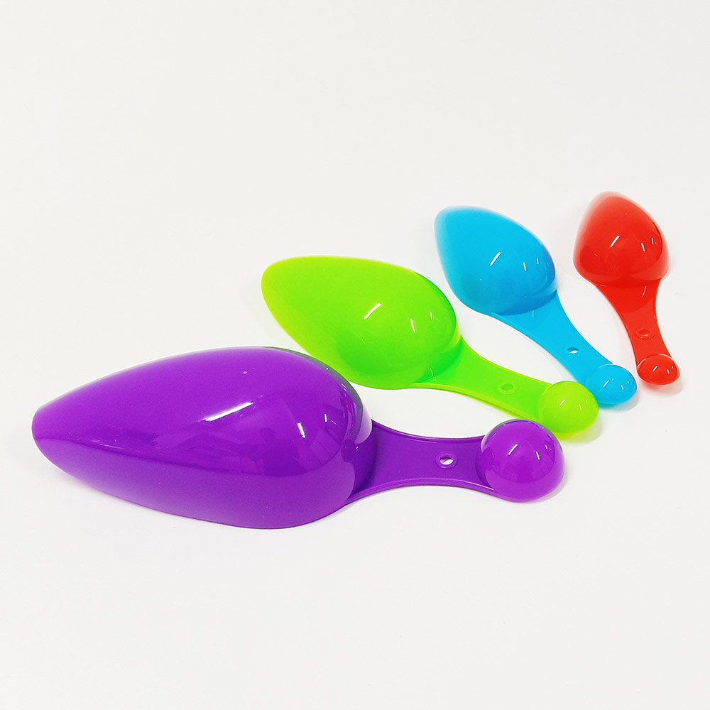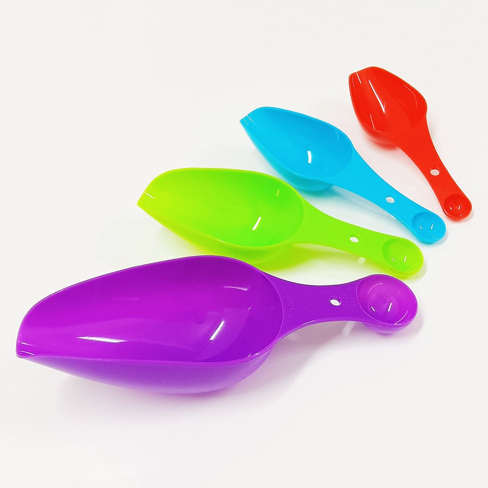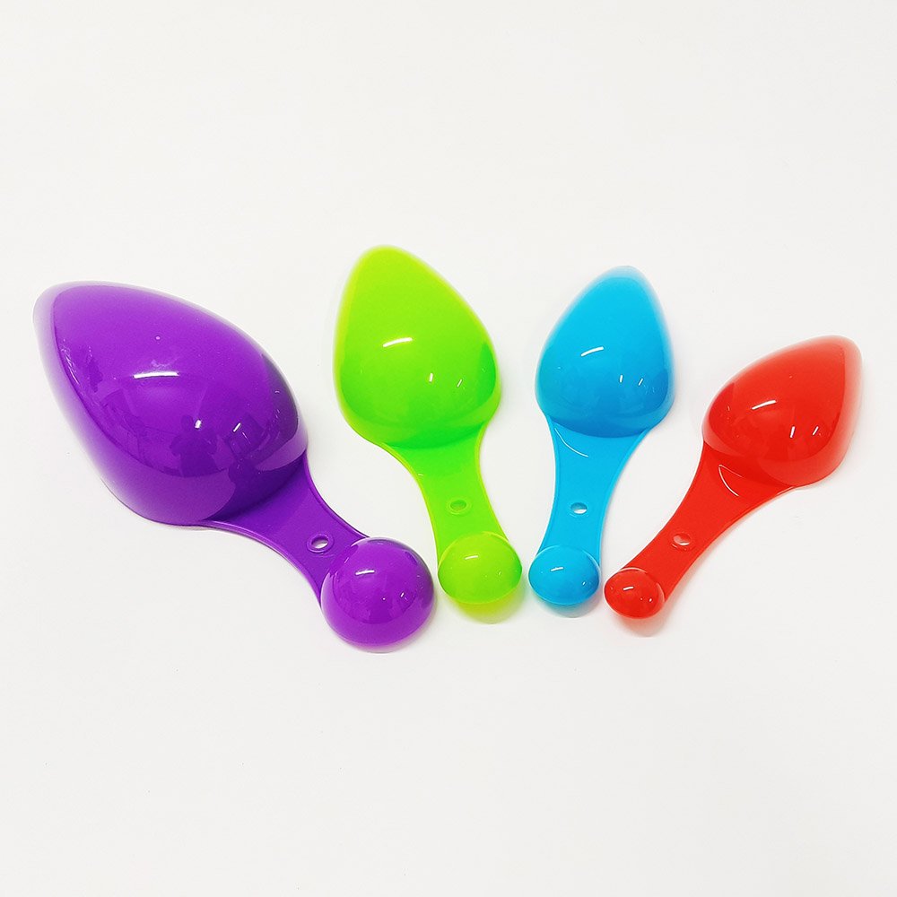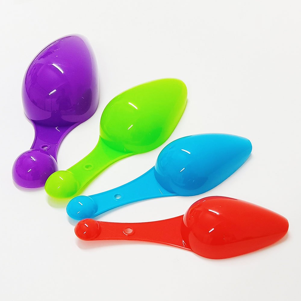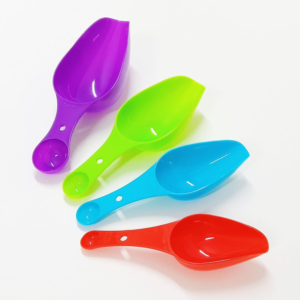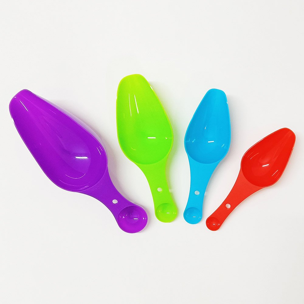 Dual-Ended Measuring Scoop Spoon Set. Bring precision, color, and convenience to your kitchen with our innovative 2-in-1 Dual-Ended Measuring Set. This 4-piece collection combines a scoop and a spoon on each handle, covering 8 essential measurements in a space-saving, nestable design. Perfect for bakers, cooks, and craft enthusiasts who value accuracy and organization.