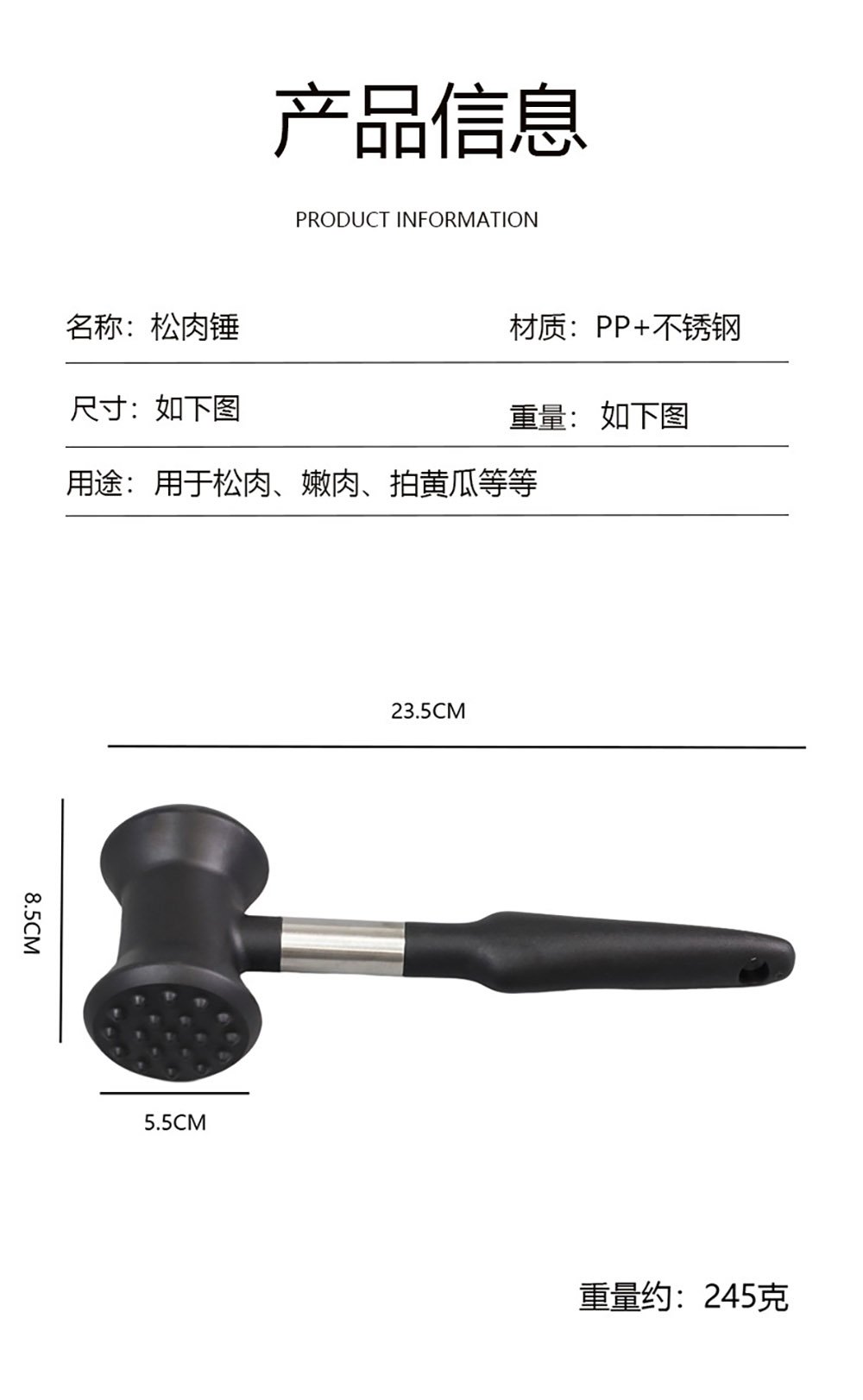 Product Specifications for Dual-Side Meat Tenderizer Hammer: