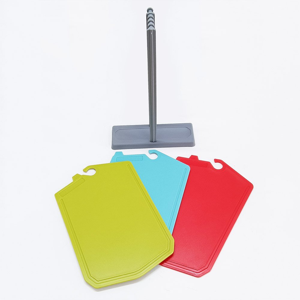 Organize Your Kitchen, Safeguard Your Health with Our Food Grade 3-Piece Color-Coded Cutting Board Set with Hanging Rack