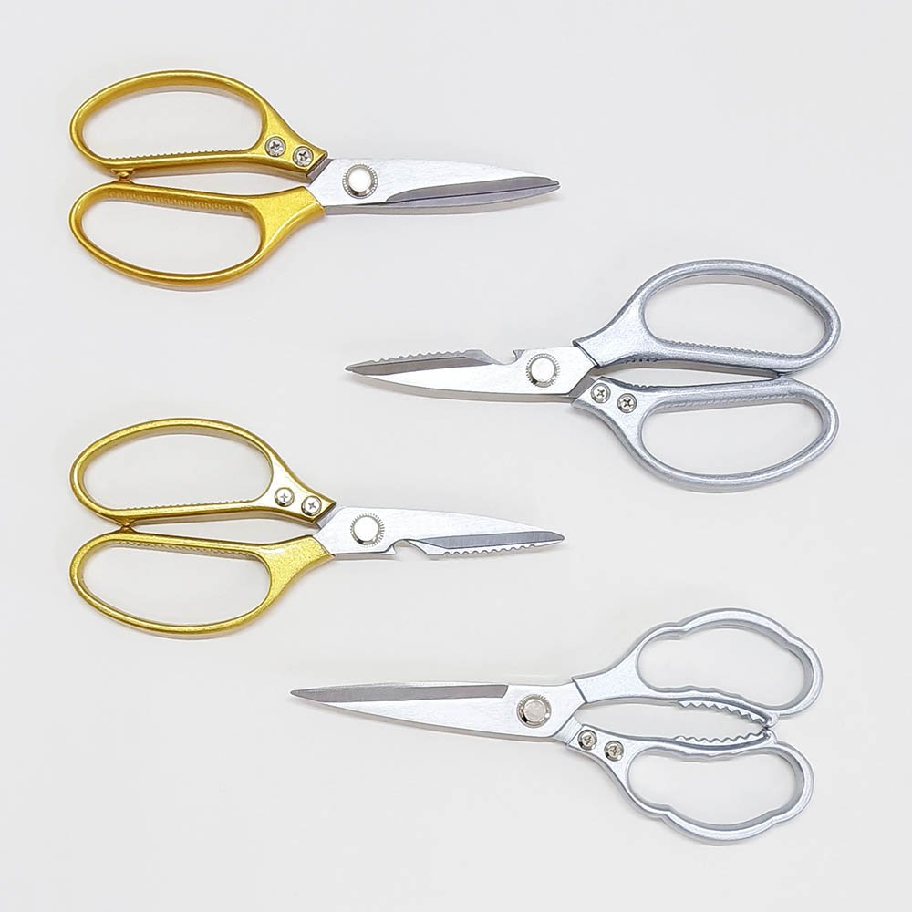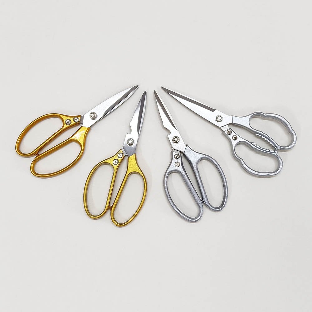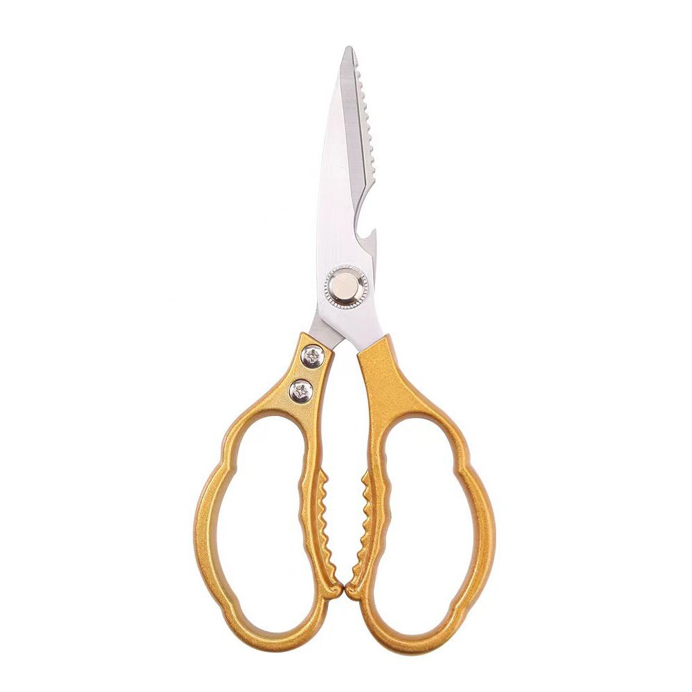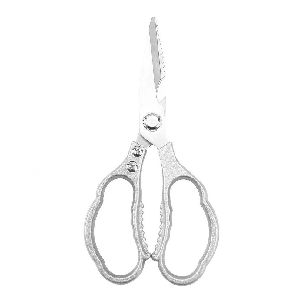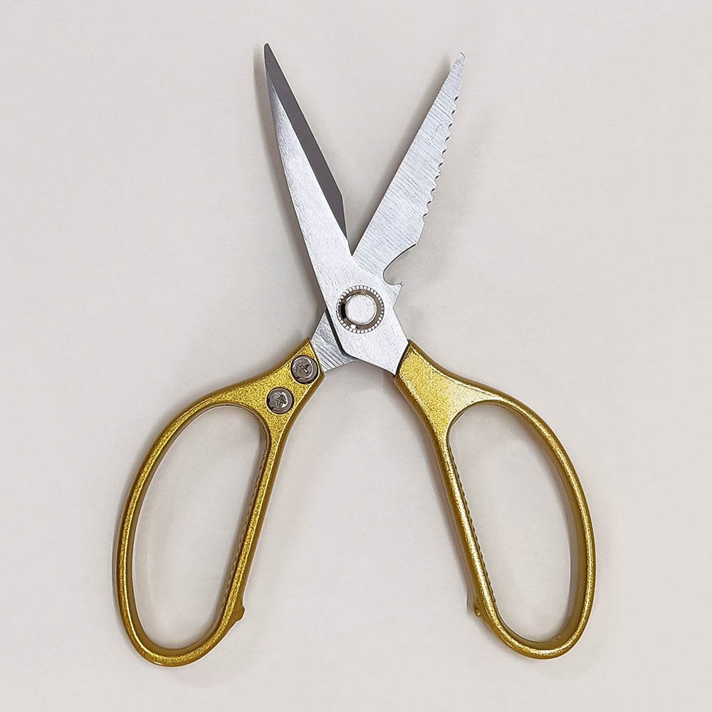 8.5″/9″ Heavy-Duty Kitchen Scissors with Aluminum Alloy Handle. Upgrade your kitchen toolkit with our professional-grade Heavy-Duty Kitchen Scissors. Designed for both chefs and home cooks, these ultra-sharp shears feature 3.8mm thick 2CR13 stainless steel blades and ergonomic aluminum alloy handles for exceptional strength, comfort, and versatility. Choose from multiple sizes and upgraded models with added tools like a fish scaler, bottle opener, and nutcracker.