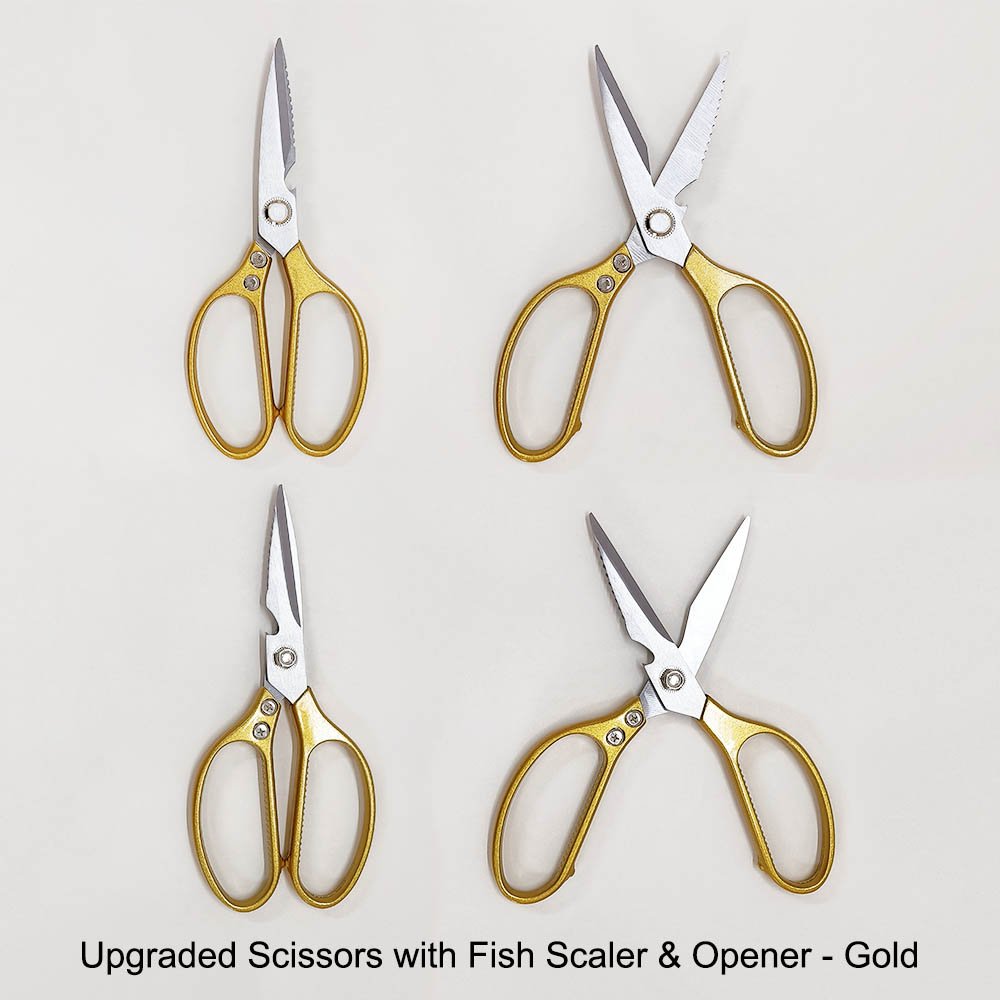 - 8.5-inch Upgraded Scissors – Includes fish scaler & opener (Gold/Silver)