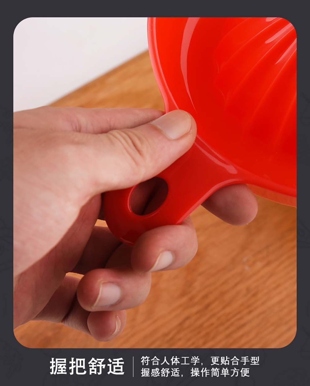 - Ergonomic Comfort Handle: The handle is ergonomically shaped to fit naturally in your palm, providing a secure, non-slip grip. This design maximizes leverage and control, making juicing easy and comfortable even for those with less hand strength.