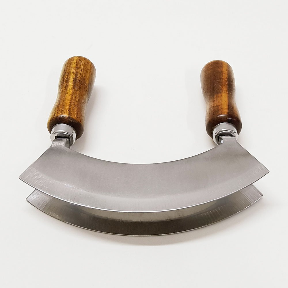 5.4 Inch Mezzaluna Knife Sharp Double Blade Chopping Pizza Cutter Rocker Salad Chopper Stainless Steel Fruit Vegetable Mincing