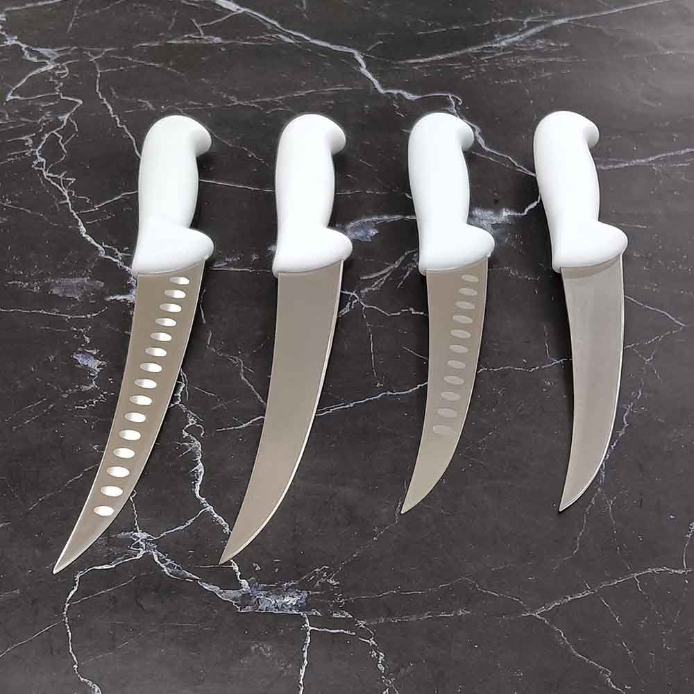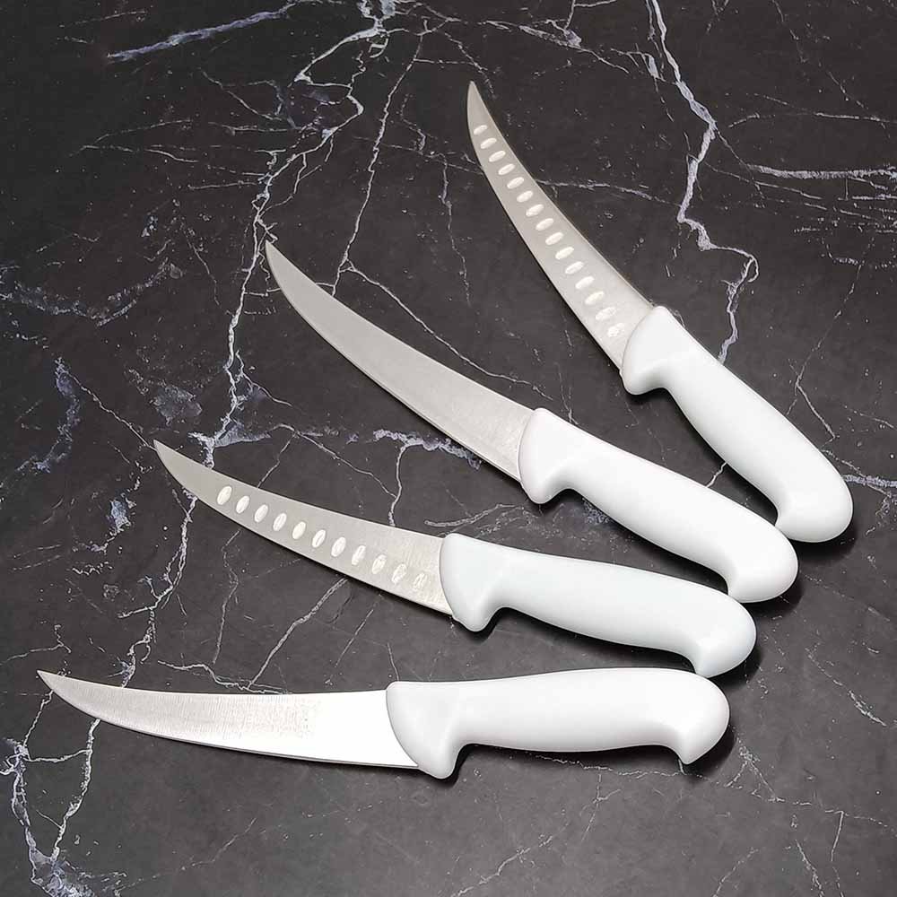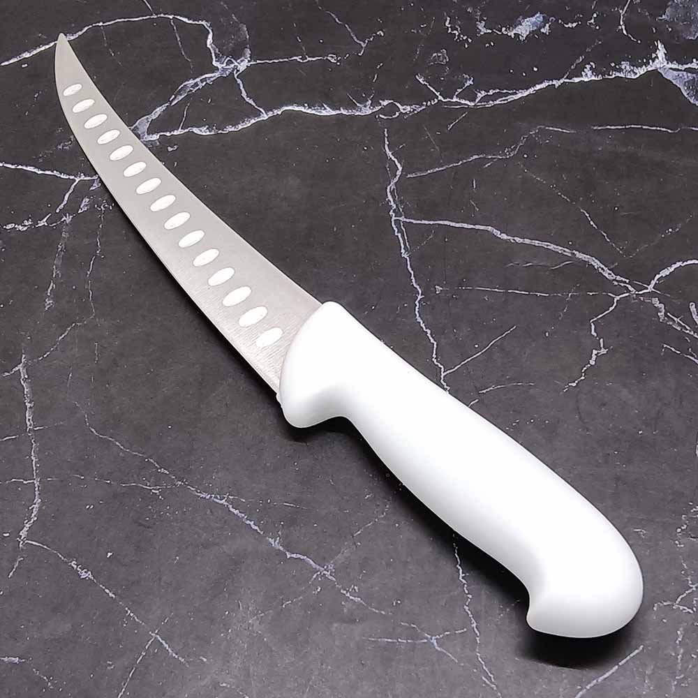 - Specialized Curved Blade Design: The distinct curved profile of the blade is engineered for optimal control when navigating around bones and joints, making skinning and deboning smoother, safer, and more efficient than straight blades.