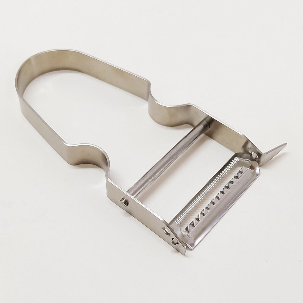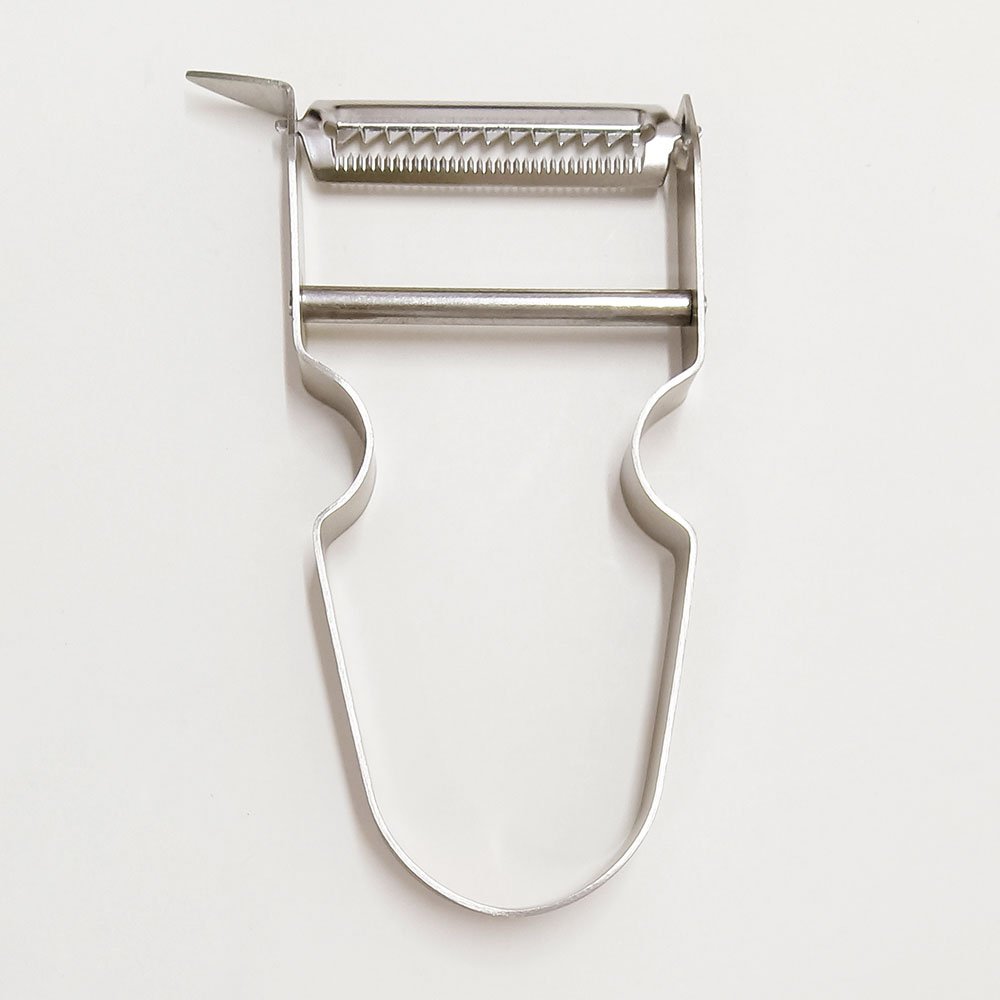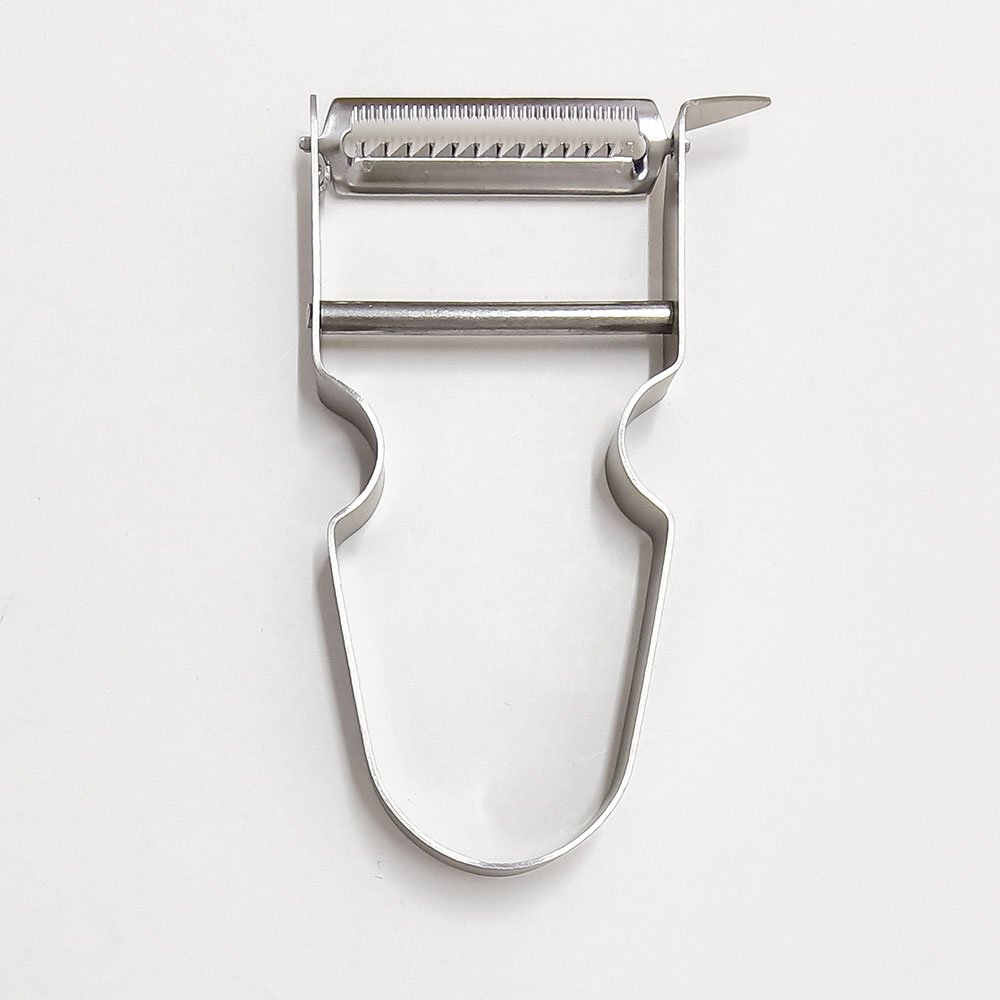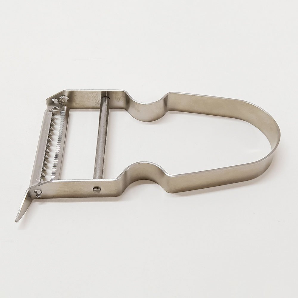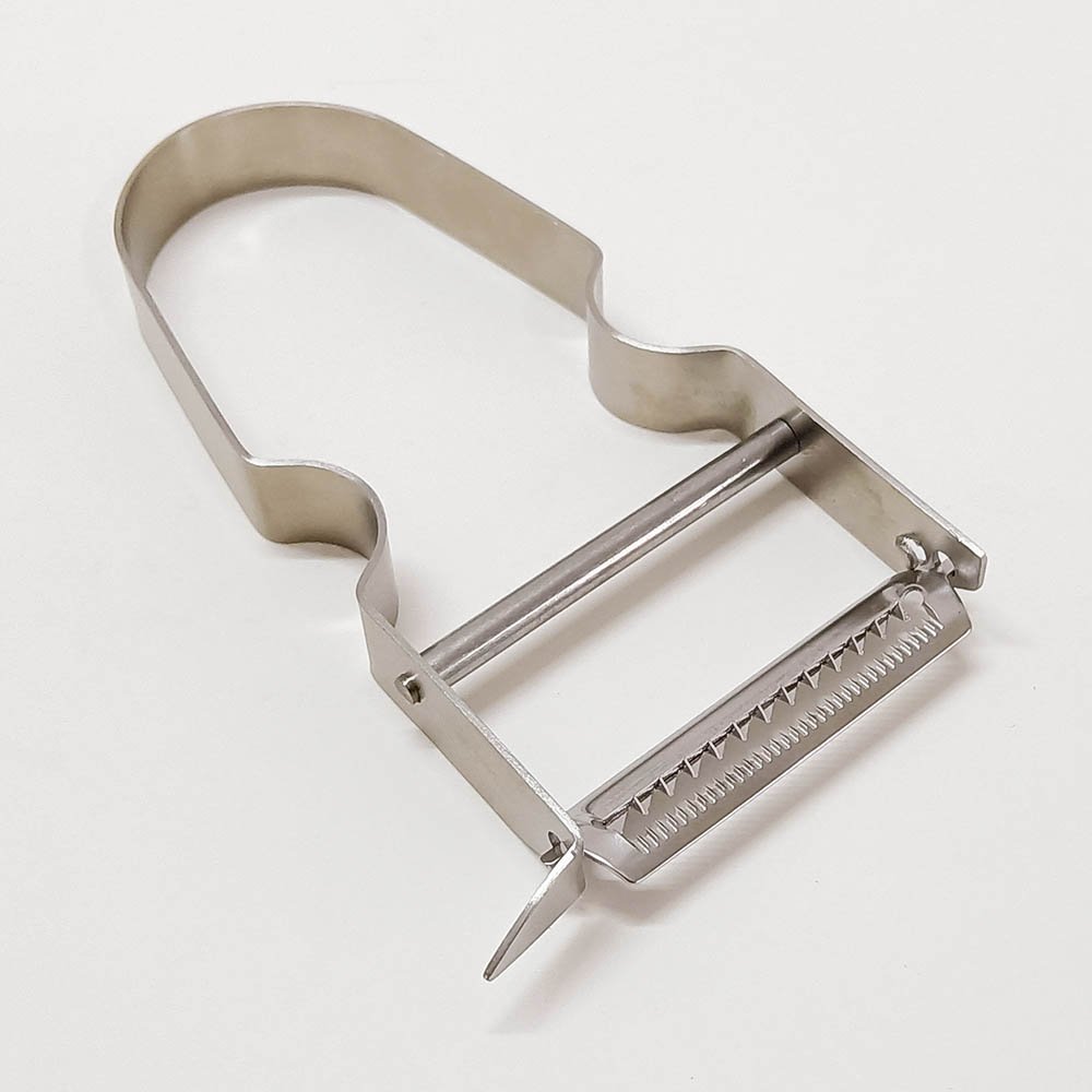 Serrated-Blade Metal Stainless Steel Fruit Vegetable Peeler. If you’re looking for a reliable kitchen tool that combines efficiency and style, the Serrated-Blade Stainless Steel Fruit and Vegetable Peeler is your perfect match. Featuring swivel blades mounted on a durable Y-shaped stainless steel structure, this peeler ensures smooth and precise peeling for every type of produce. From tough potato skins to delicate fruits, its sharp serrated blade effortlessly glides through even the most difficult surfaces. Make your food preparation quick and hassle-free with this highly versatile and lightweight tool.