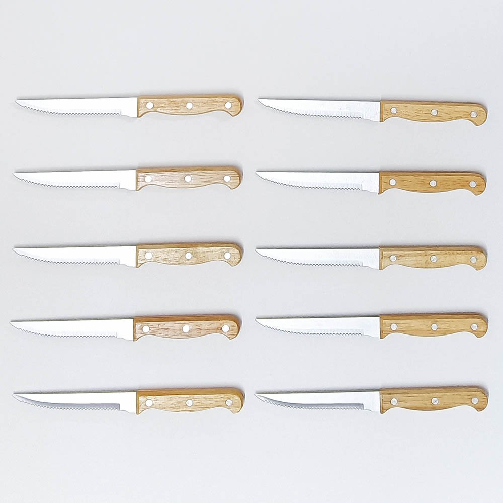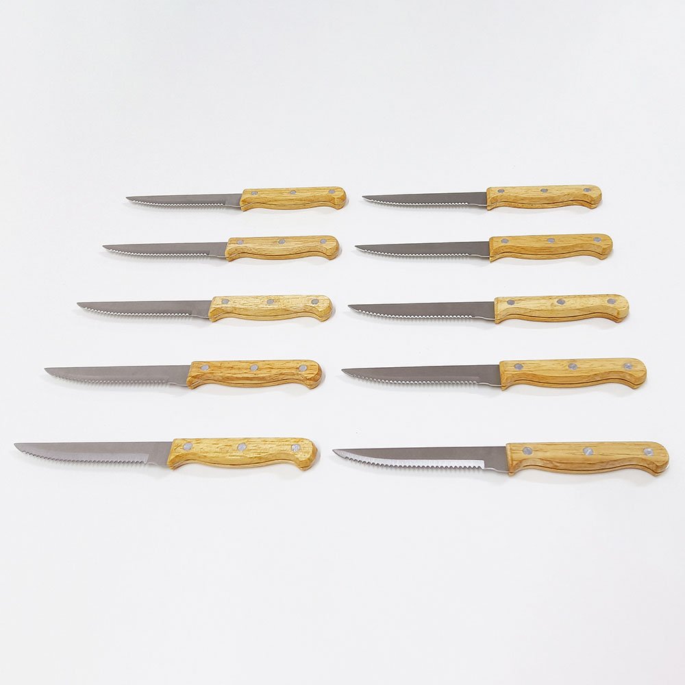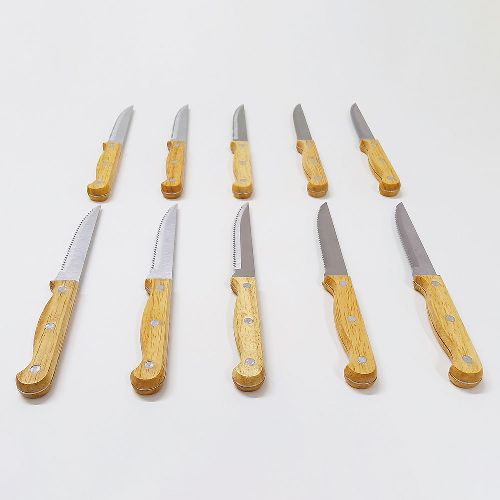 Upgrade your dining and food preparation experience with our 10 Pieces Serrated Steak Knife Set. Crafted from premium stainless steel 2Cr13 blades and featuring an elegant rubber wood handle, this knife set is designed for strength, durability, and comfort. Whether you’re hosting a dinner party, barbequing outdoors, or enjoying a cozy family meal, these knives are the perfect addition to your kitchen.