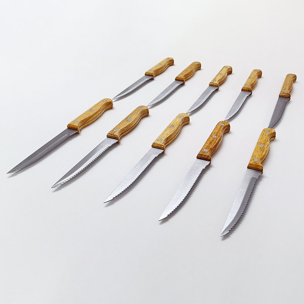 Each knife features a 10cm sturdy rubber wood handle that is ergonomically crafted for a smooth grip and easy handling. The natural wooden finish not only adds an aesthetic touch to your table but also ensures functionality for regular use. The lightweight design—each knife weighing just 37.6g—further contributes to effortless maneuverability during meals and preparation.