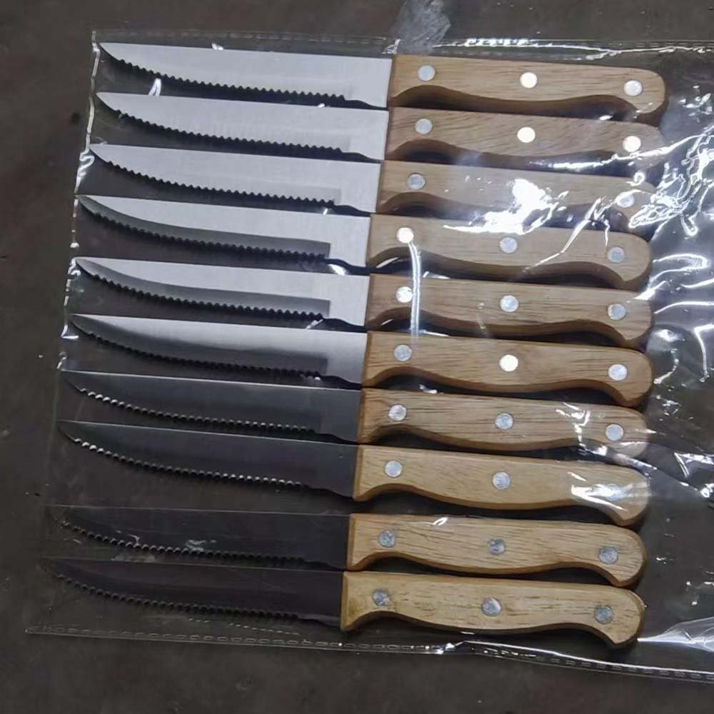 This 10-piece steak knife set is perfect for various settings, from the kitchen to restaurants, or even while camping outdoors. The practicality doesn’t end there—the set comes packed in a durable polypropylene (PP) bag for safe and secure storage. Additionally, the lightweight design and compact packaging make it convenient for both personal use and professional catering applications. Each master carton contains 50 sets, making it a reliable choice for bulk needs.