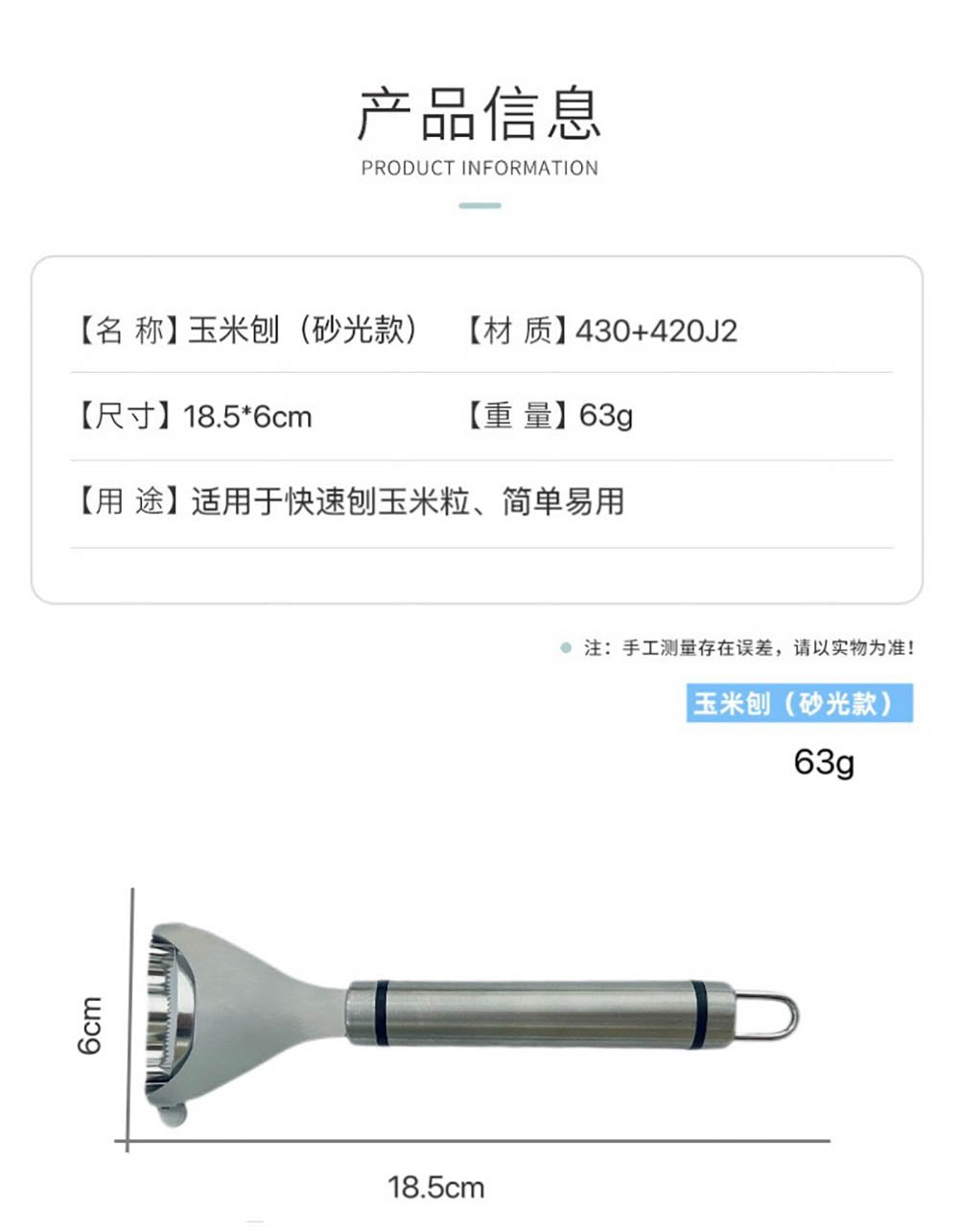 - 1 x Corn Kerneler (Shaving Tool) – 18.5*6cm, 63g