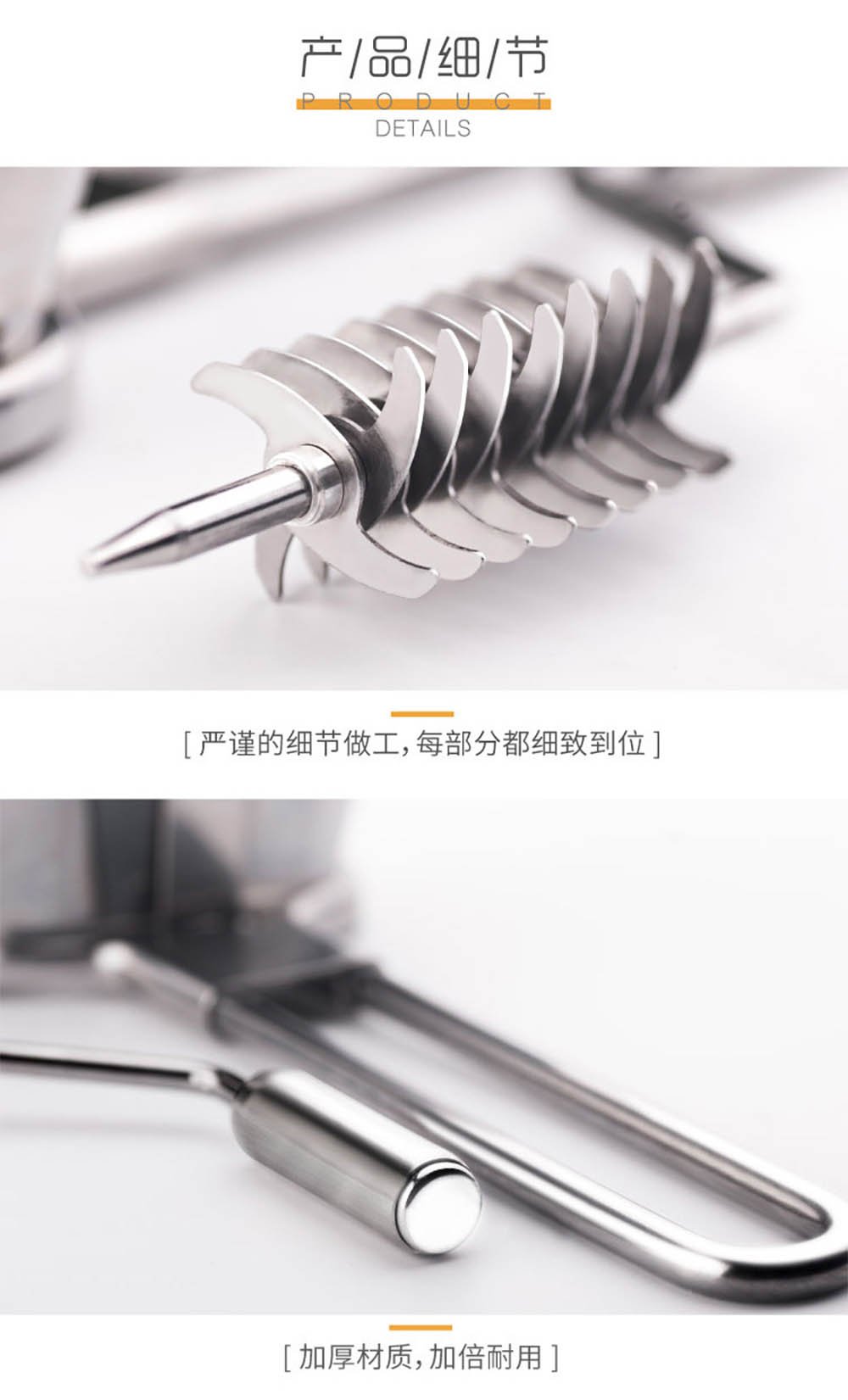 - Dual Stainless Steel Construction: Built for longevity, the cutting head is made from food-safe, rust-resistant 304 stainless steel blades, while the handle and body utilize sturdy 430 stainless steel. This combination ensures durability, easy cleaning, and safe food contact.