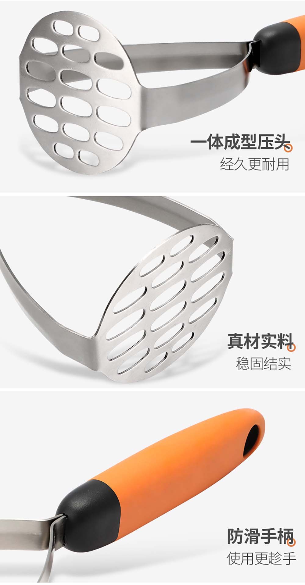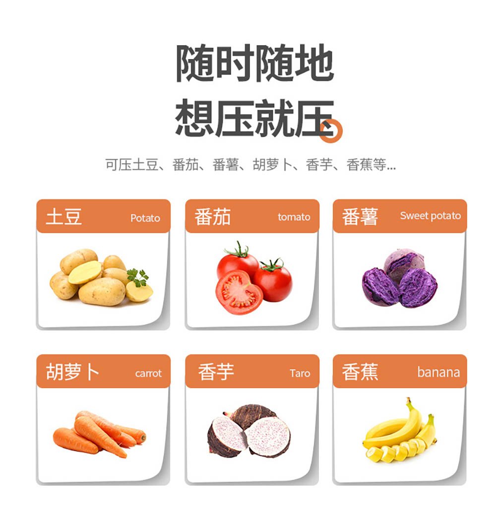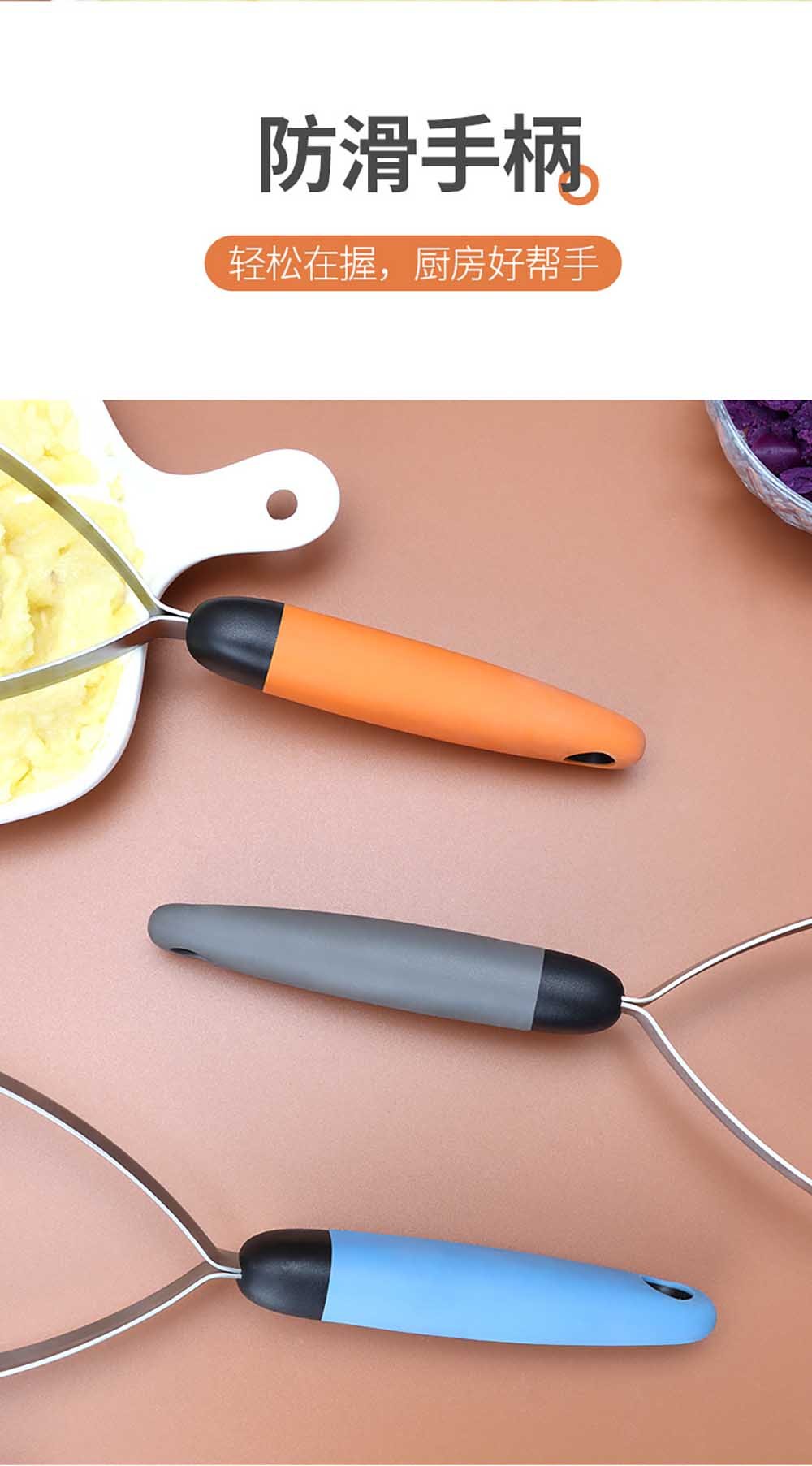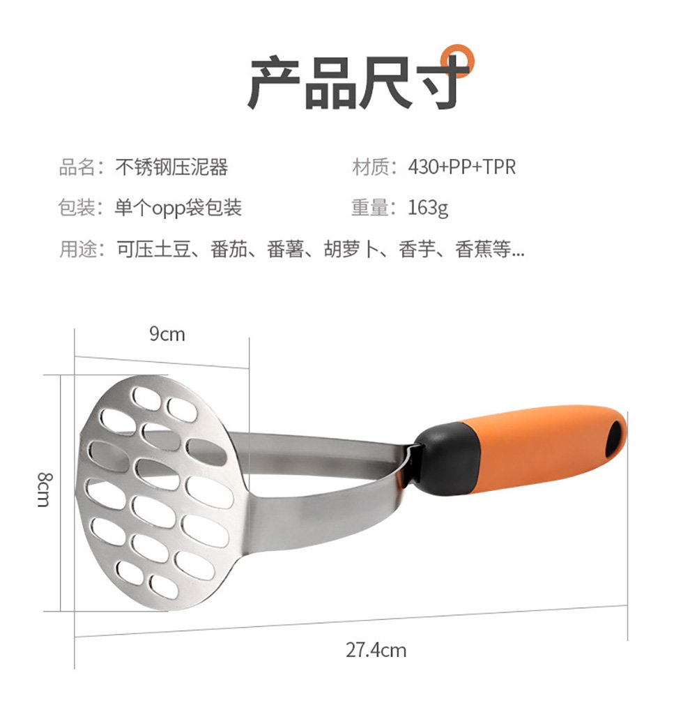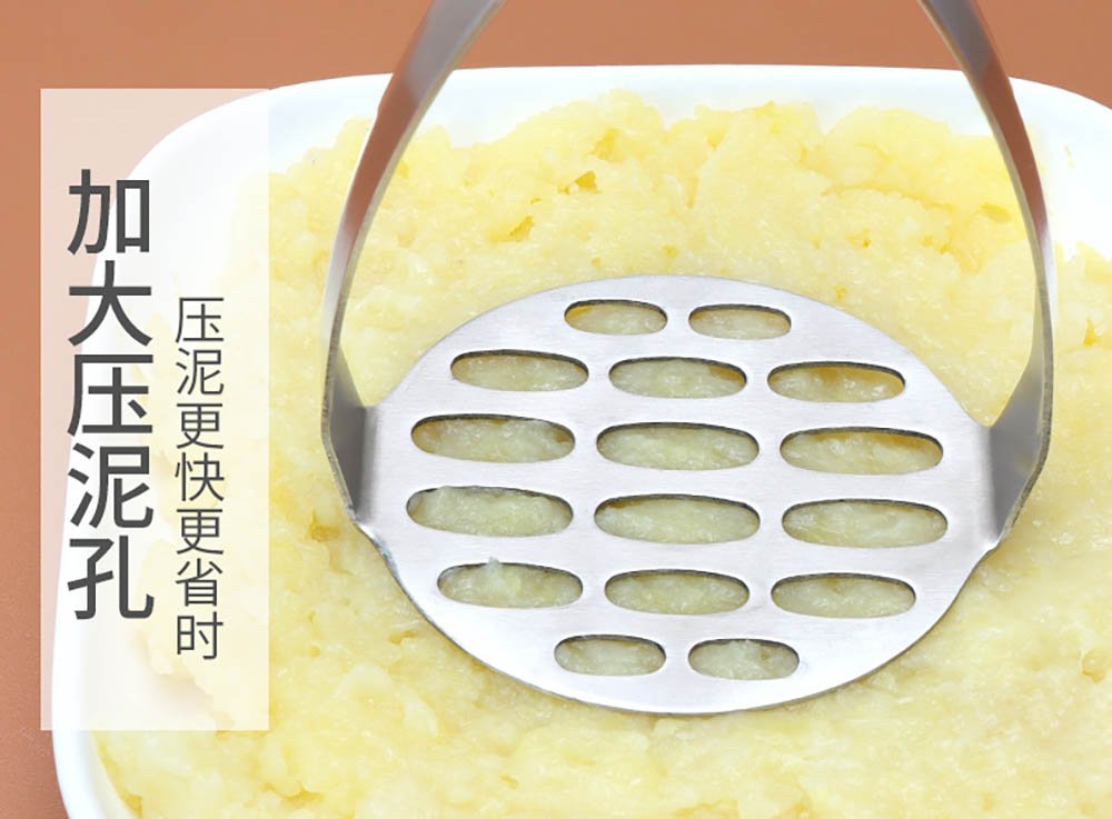 • One-Press, Perfect Results:‌ Simply prepare cooked potatoes or other soft foods, press the handles, and watch as smooth, uniform mash extrudes through the large holes. This ‌direct pressing action‌ eliminates the arm fatigue of traditional hand mashing and guarantees a ‌fluffy, lump-free texture‌ every time—ideal for mashed potatoes, baby food, sauces, and more.