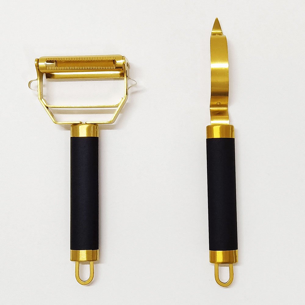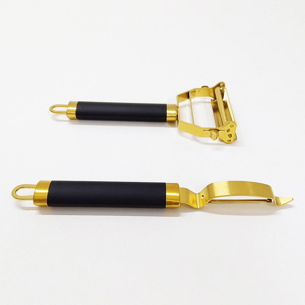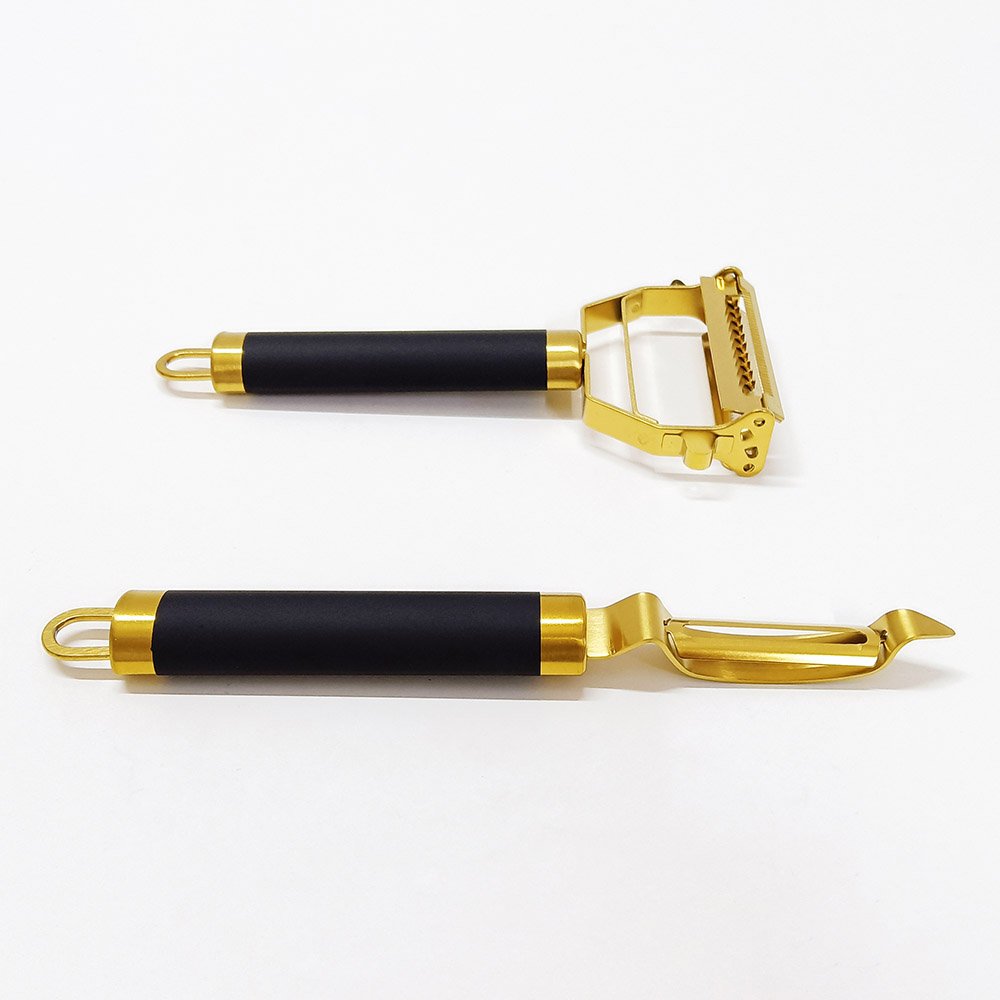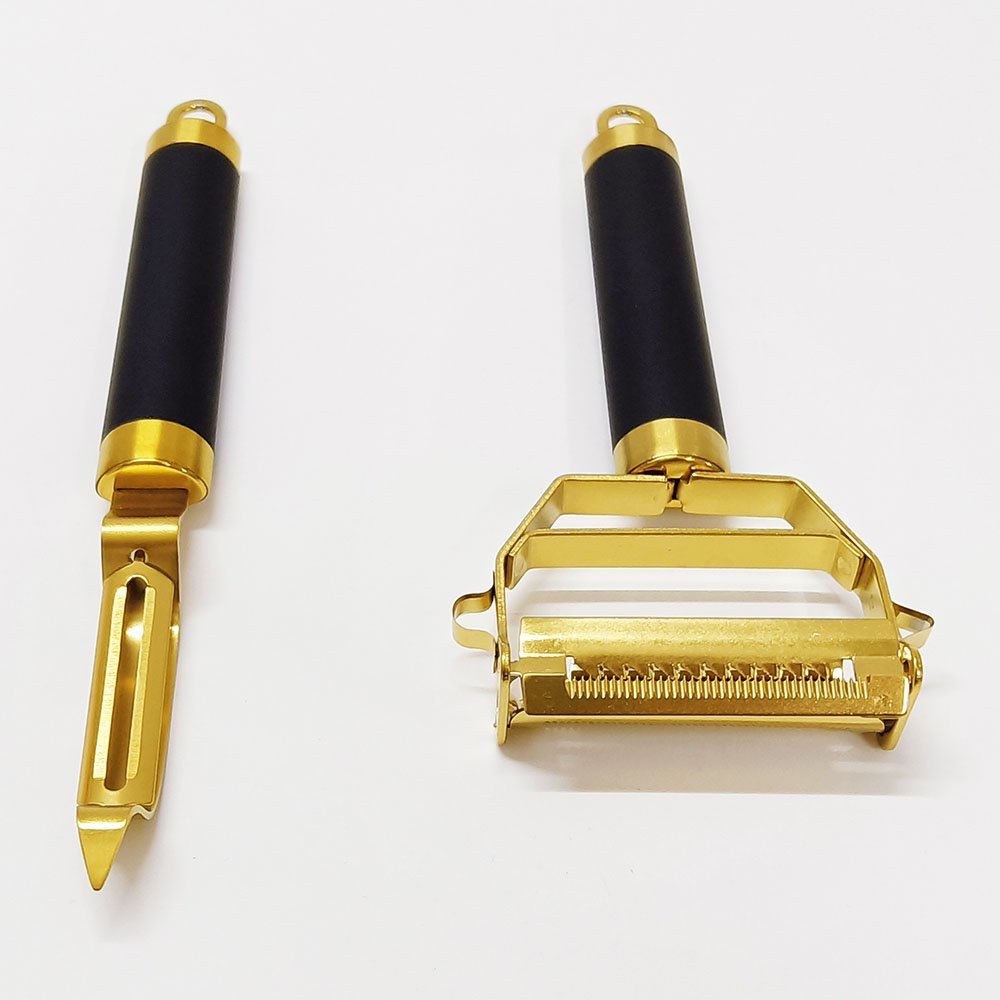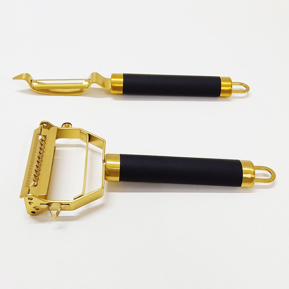 Prepare meals with efficiency, add style to your kitchen setup, and enjoy the reliability of high-quality craftsmanship. The Titanium Gold Plating Stainless Steel Multi-Function Peelers Set will quickly become a favorite in your kitchen toolkit.