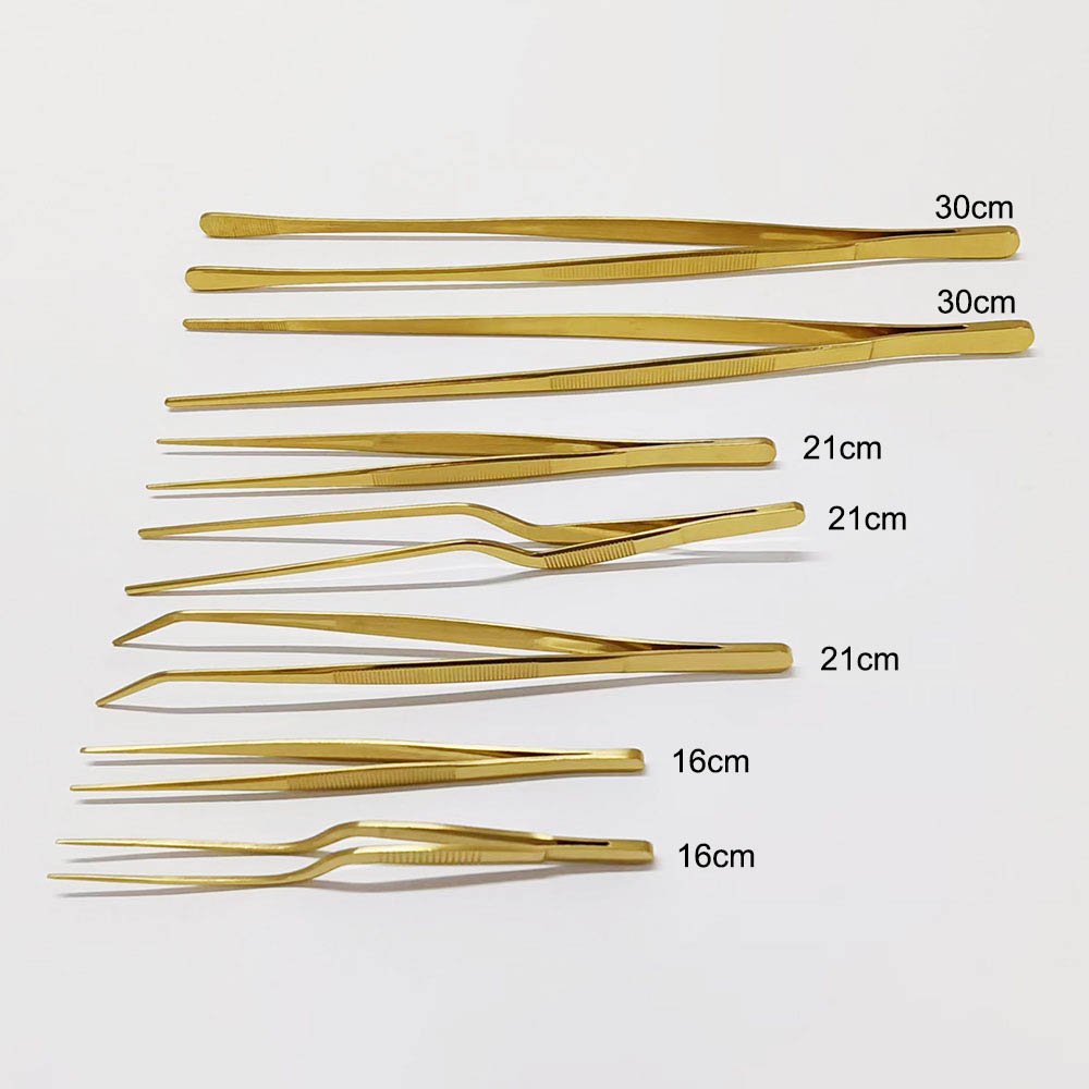Titanium Gold Plating Stainless Steel Tweezers Set. Introducing the Titanium Gold Plating Stainless Steel Cooking Tweezers Set—a must-have kitchen tool that combines functionality and elegance in one ergonomic design. Built to meet the demands of professional and home kitchens alike. This high-precision set includes a curated selection of tweezers ensuring maximum versatility for various tasks. Whether you’re handling delicate seafood, repairing small elements, or expertly plating your dishes, this set ensures superior control and precision every time.